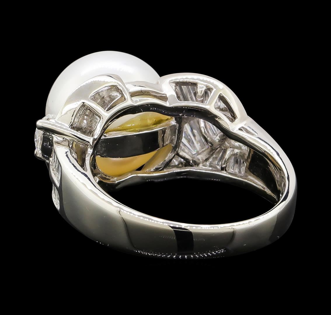One ring featuring: Platinum containing Pearl and Diamonds with a total weight of 0.74ct. Total Weight of Ring: 9.6 grams.