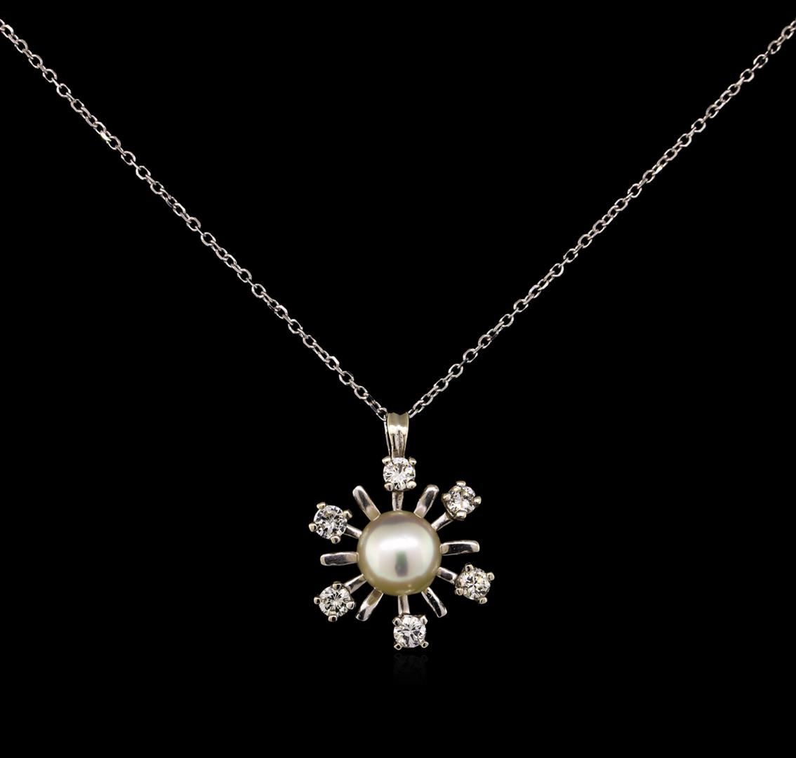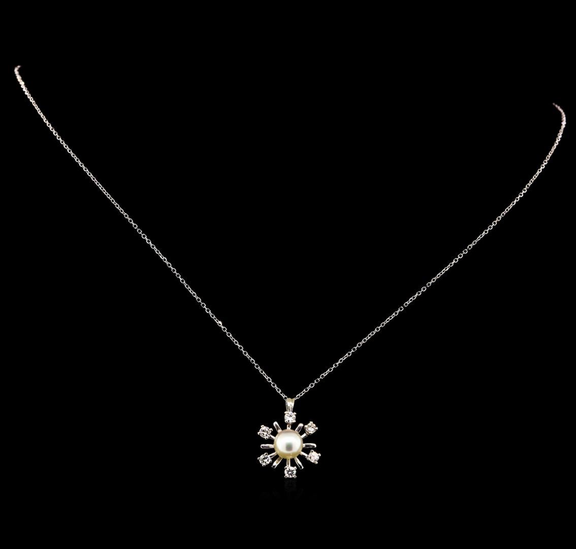 Pearl and Diamond Snowflake Pendant With Chain - 14KT White Gold