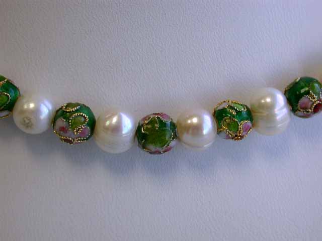 Pearl & Hand Painted Enamel Necklace approximately 18 inches long