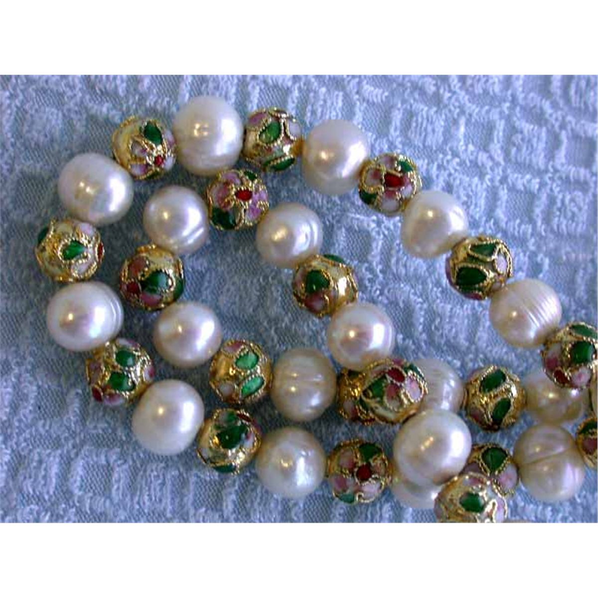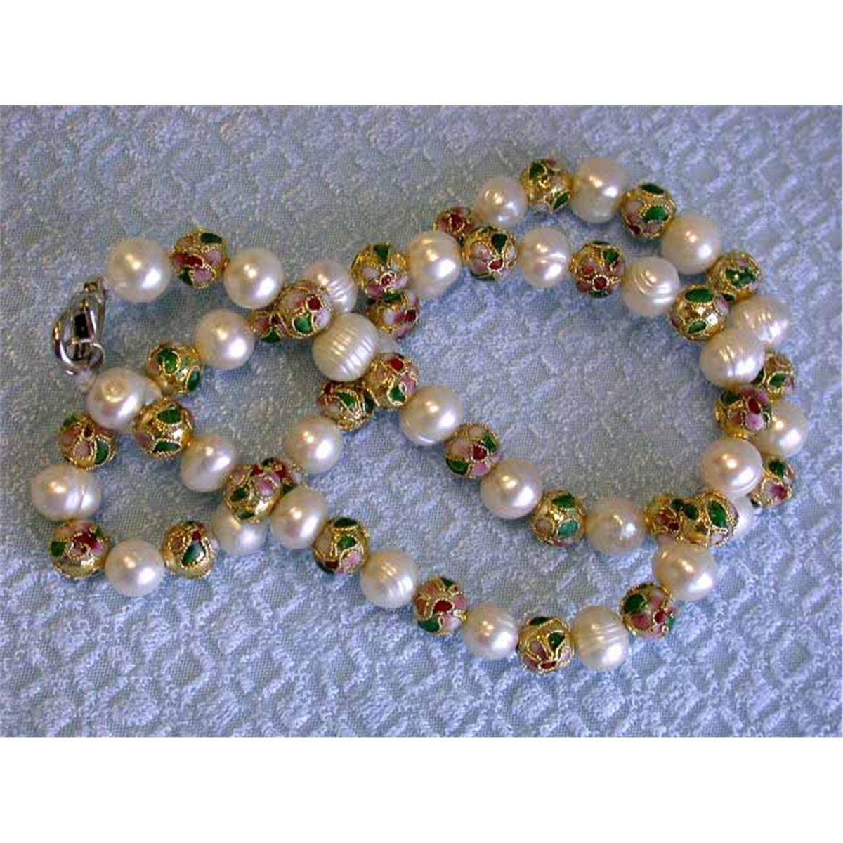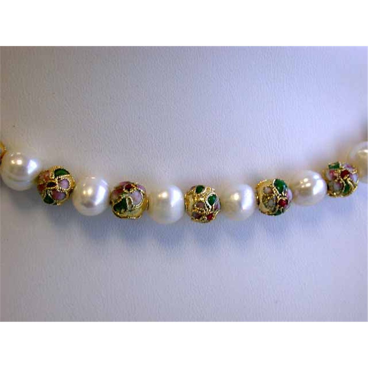 Pearl and Enamel Necklace about 7.5 mm bead size and approximately 18 inches long