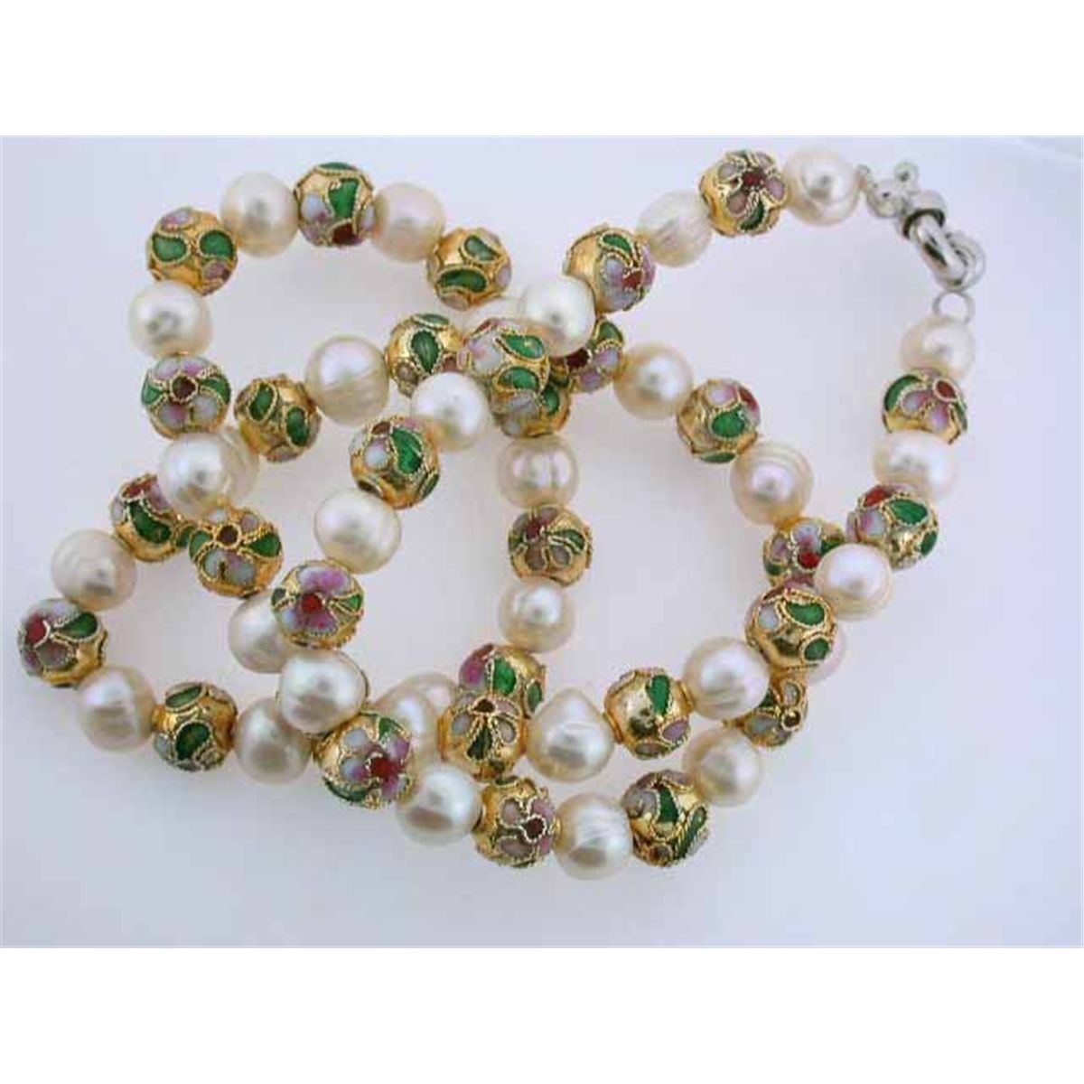Pearl and Enamel Necklace. The Pearls and Enamels are approximately 7.5 mm. The necklace's length is approximately 18 inches long.