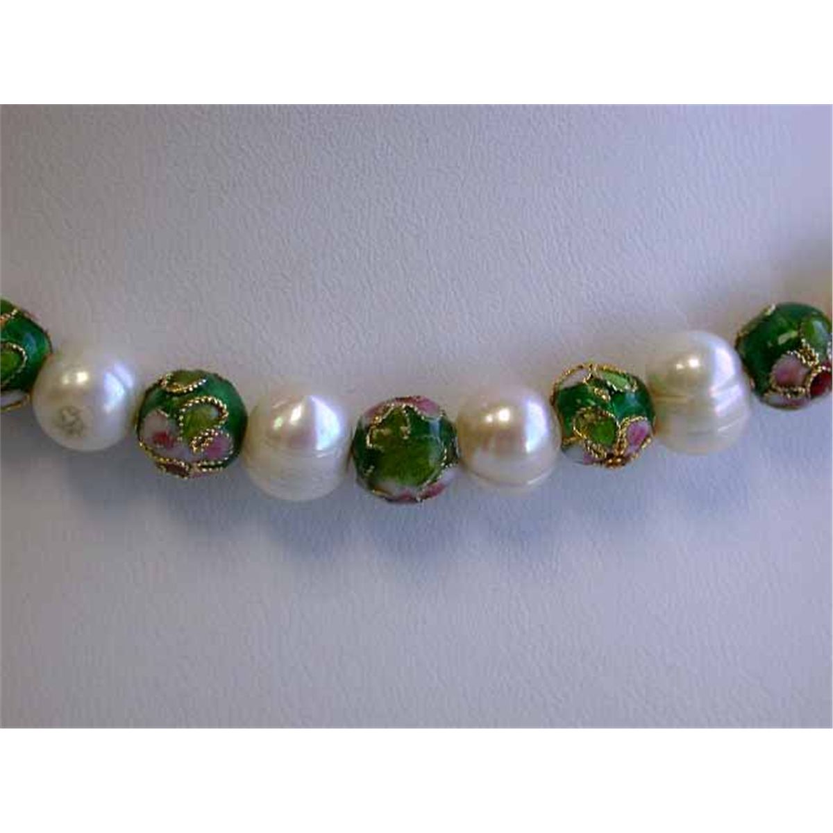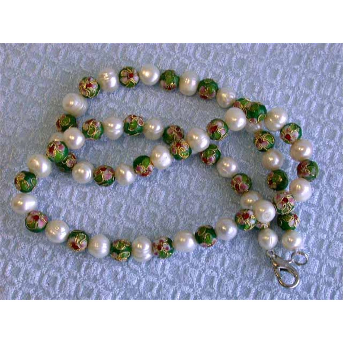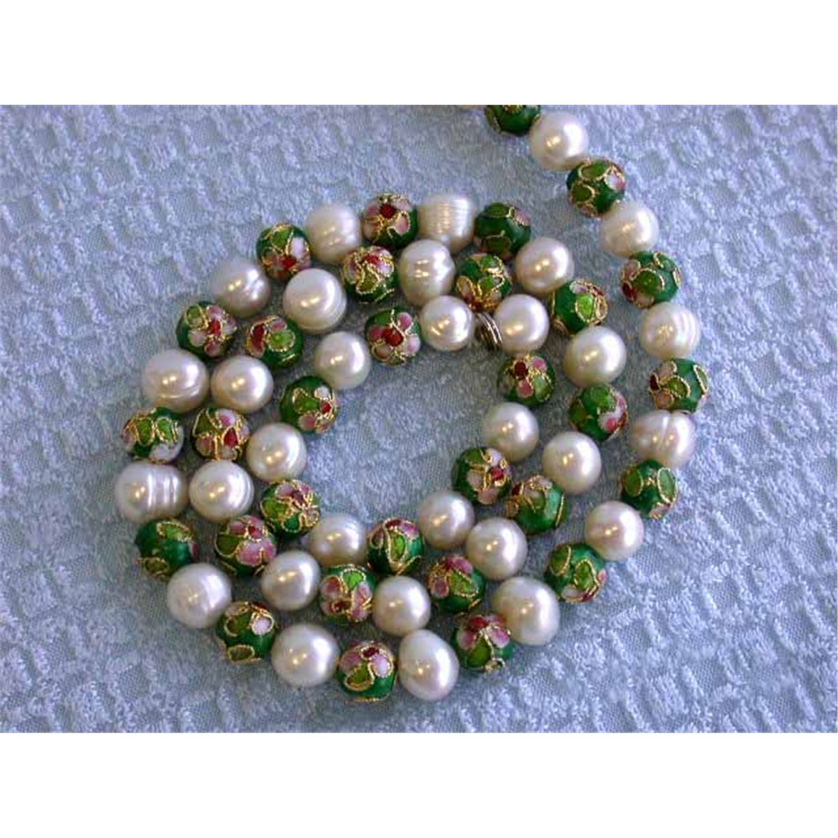 Pearl & Hand Painted Enamel Necklace approximately 18 inches long