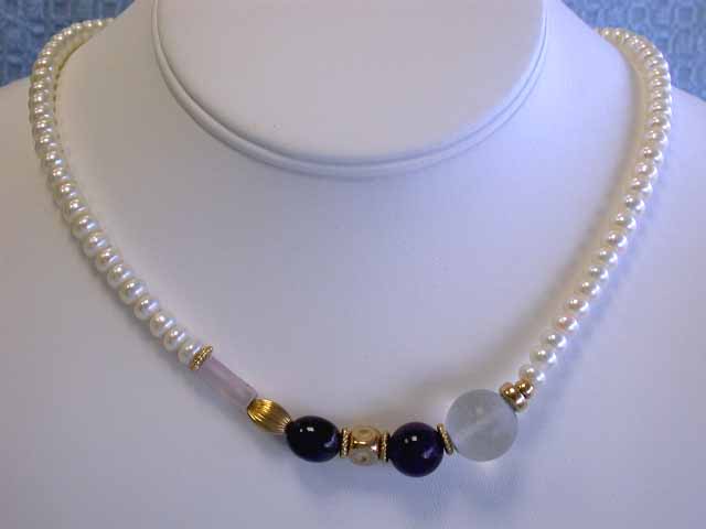 Pearl and Gemstones Necklace approcimately 18 inches long