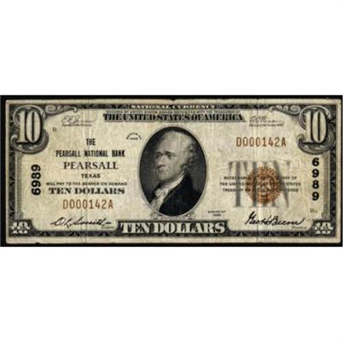 Pearsall, TX. $10 1929 Ty. 1. Charter #6989. Fine