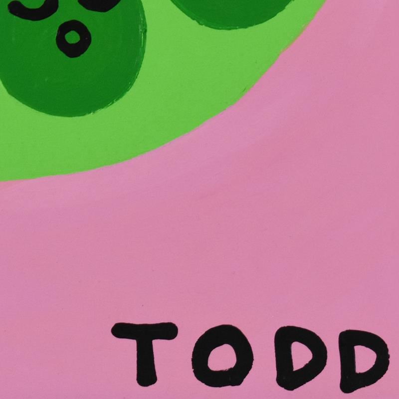 "Peas" is an original acrylic painting on canvas, hand signed by Todd Goldman. This piece comes framed. Includes Letter of Authenticity. Measures approx. 22" x 18" (frame), 19.5" x 15.5" (image). There is minor wear on the frame but this piece is overall in good condition.