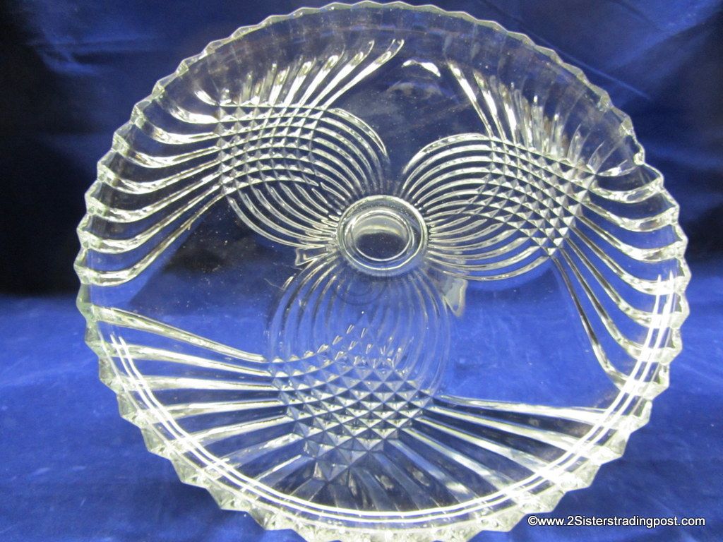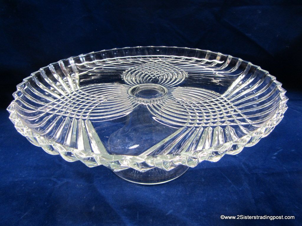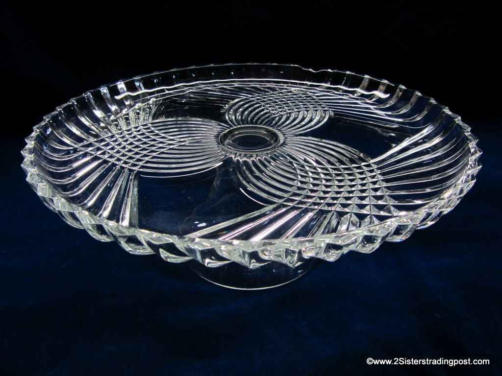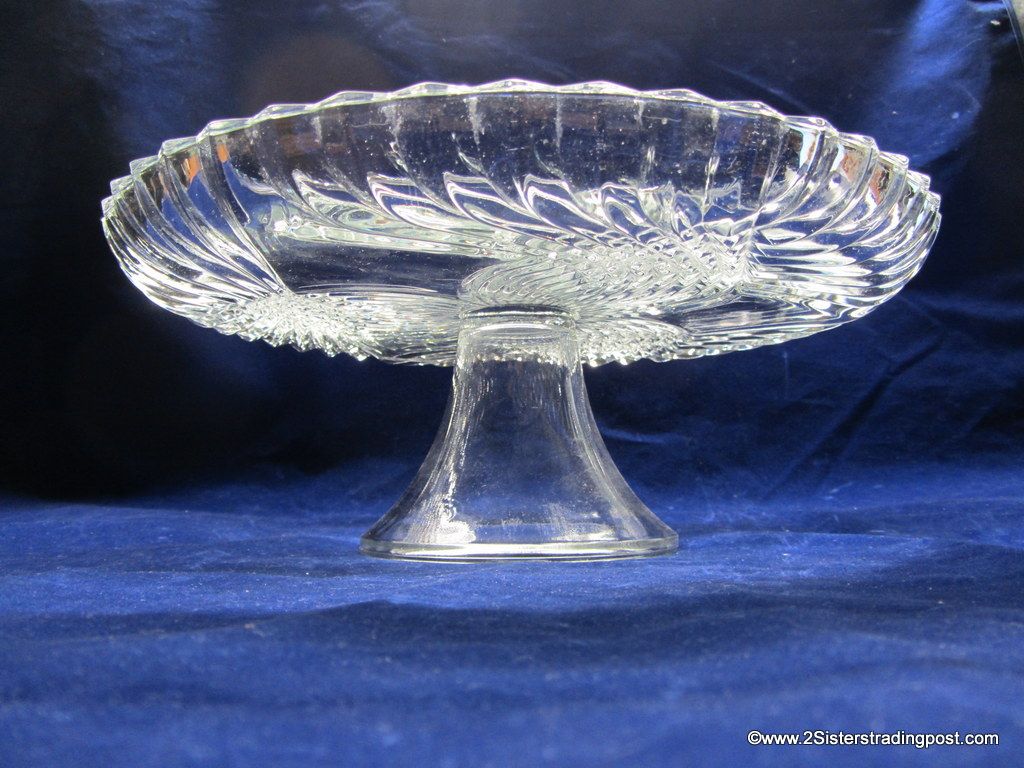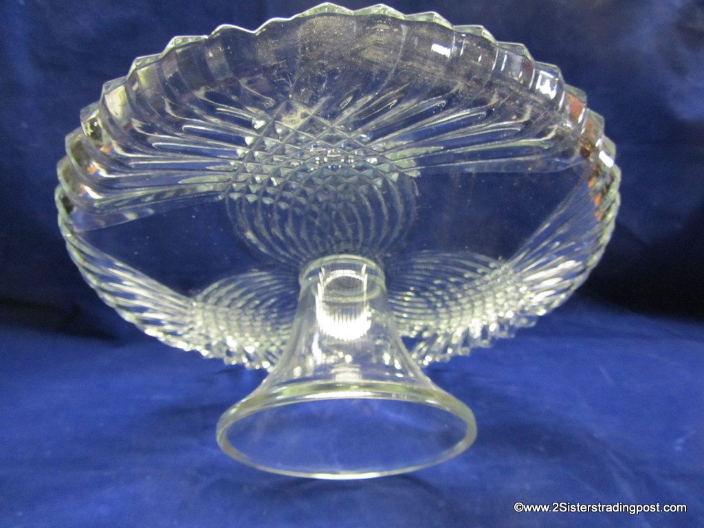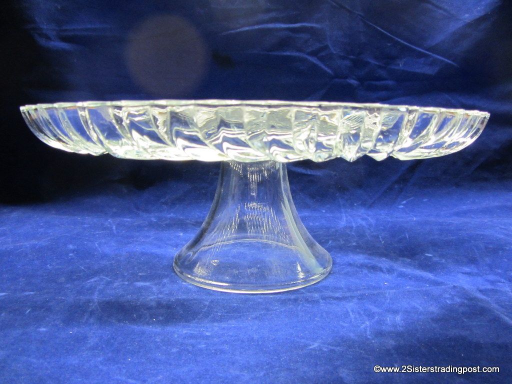 Pedestal Cake Plate measures 11.5" across & stands about 4" tall. The plate sits on a clear glass pedestal the base is