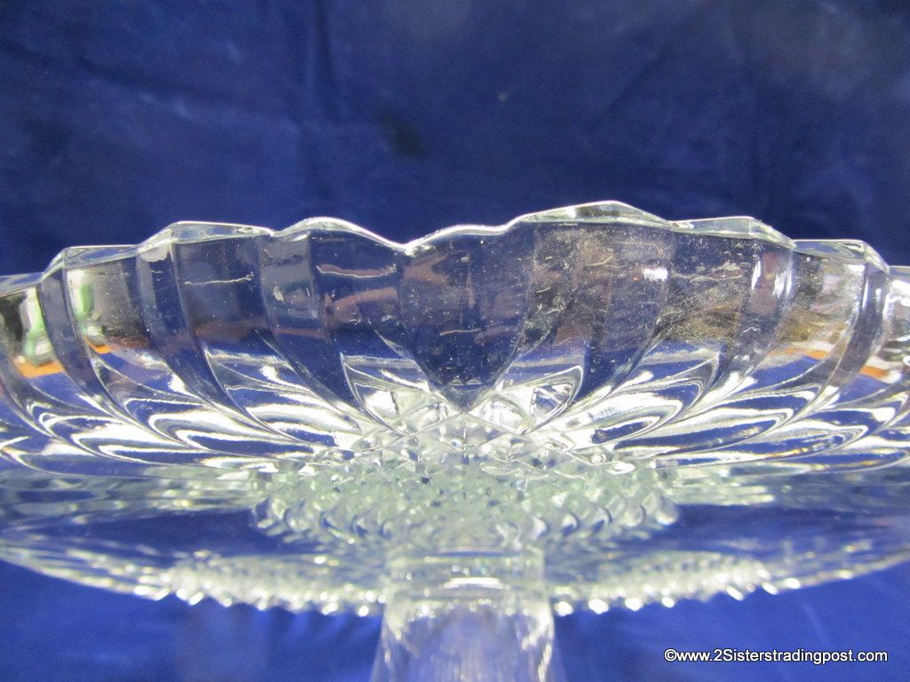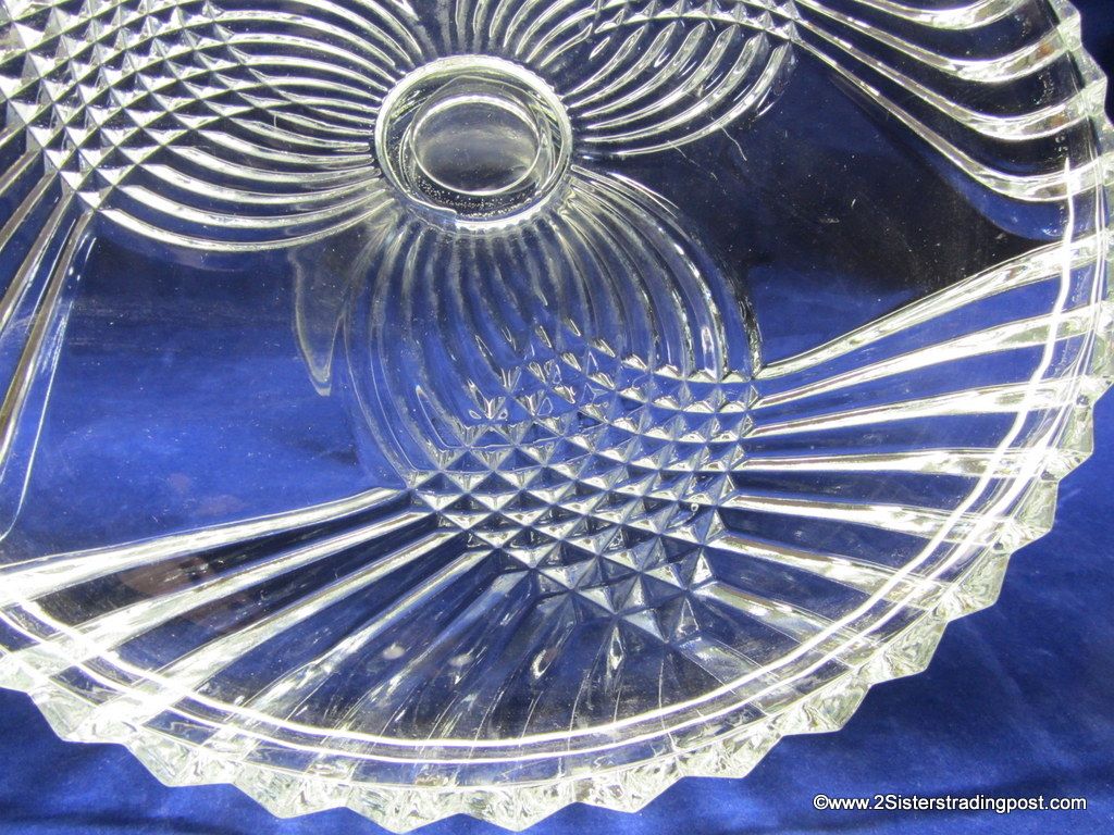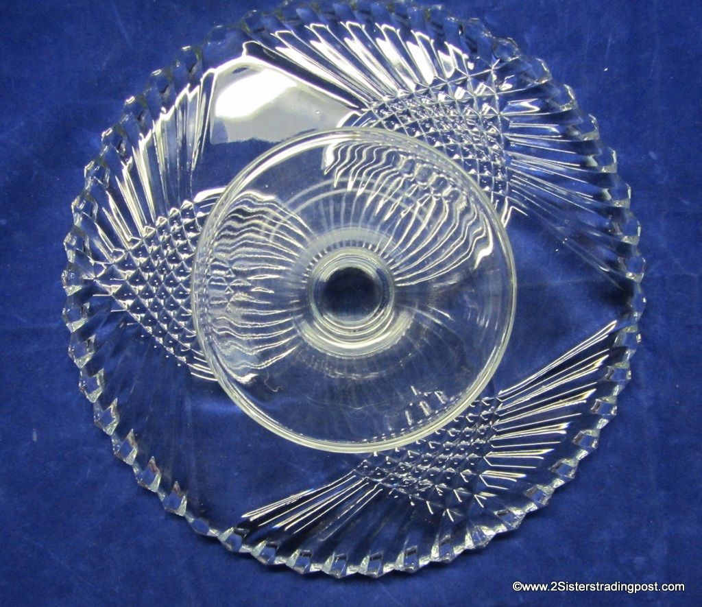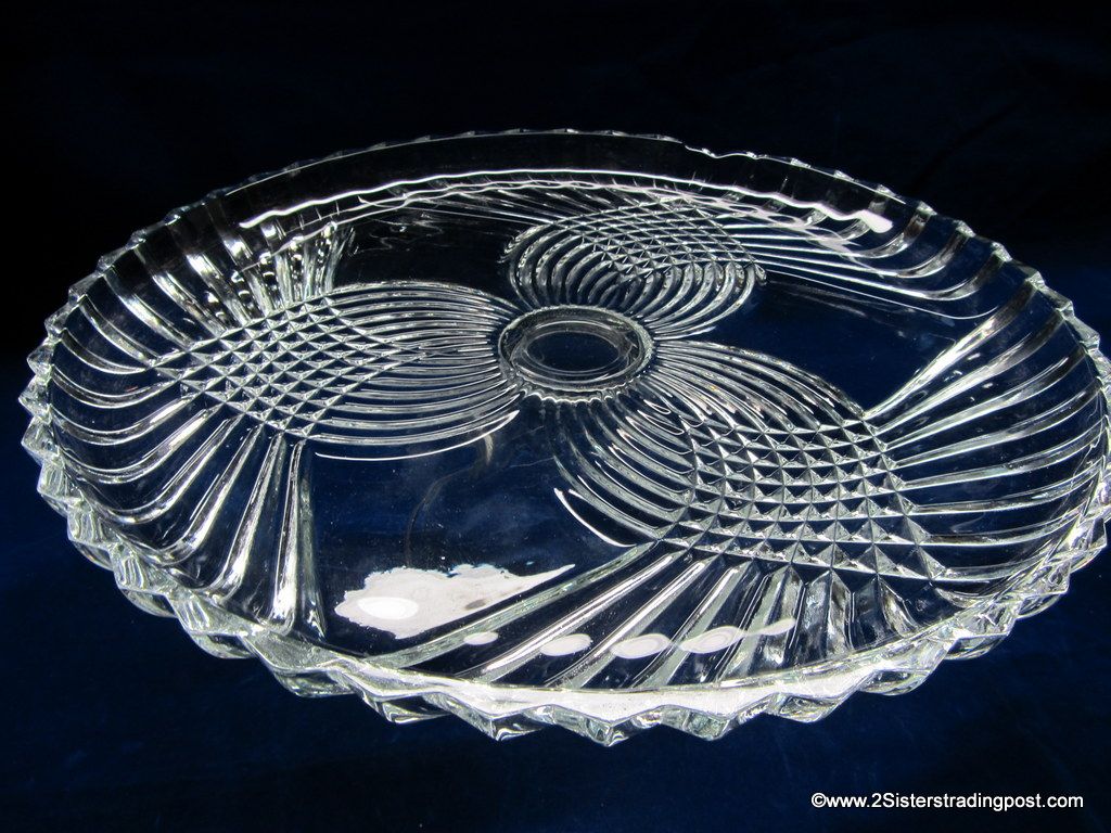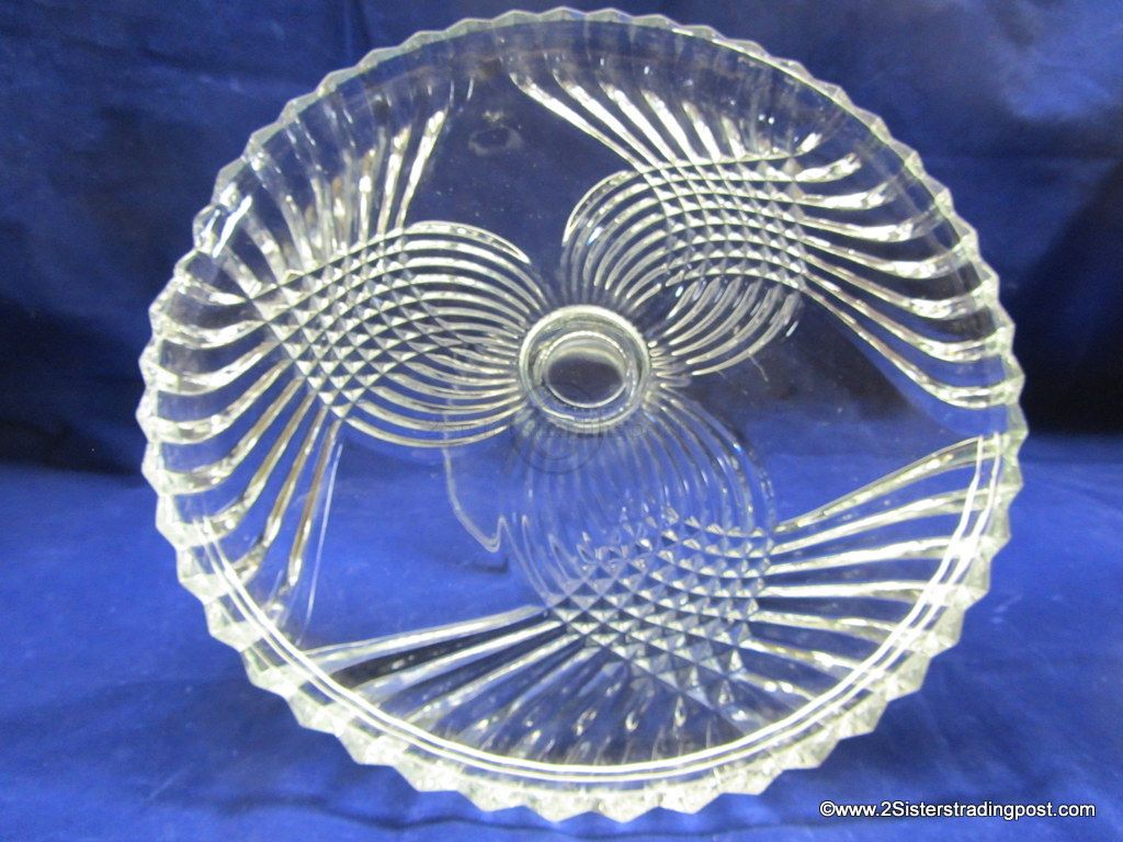 Pedestal Cake Plate measures 11.5" across & stands about 4" tall. The plate sits on a clear glass pedestal the base is