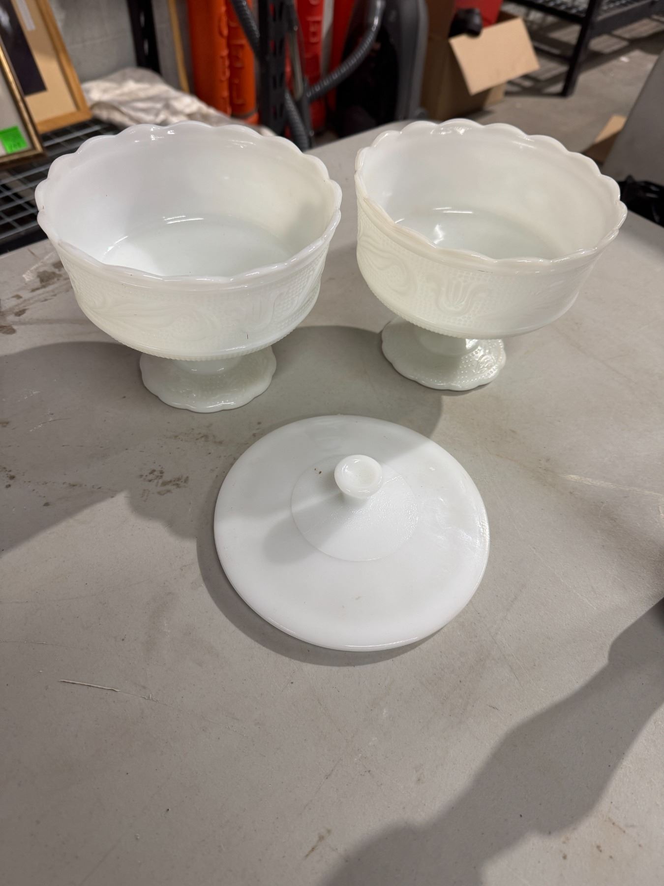 Pedestal bowls and a lid