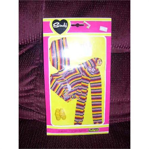 Pedigree Sindy Fashions Outfit in Package. This is number 4113OU Made in Hong Kong. It has the hooded top and matching material pants and yellow shoes. Doll comes from a smoke free environment. Buyer to pay $6 for shipping, handling, and insurance. Thanks for viewing.
