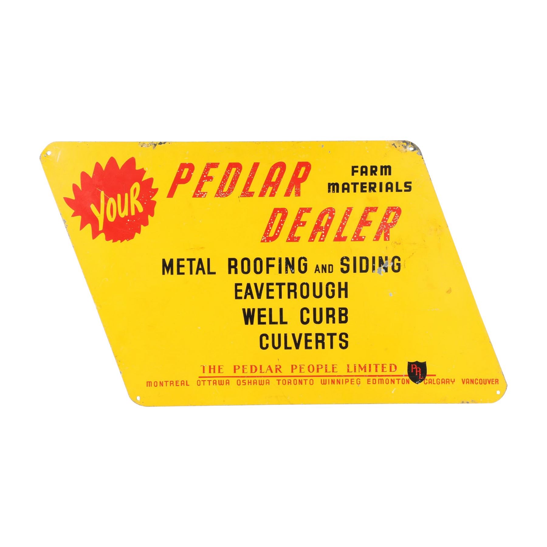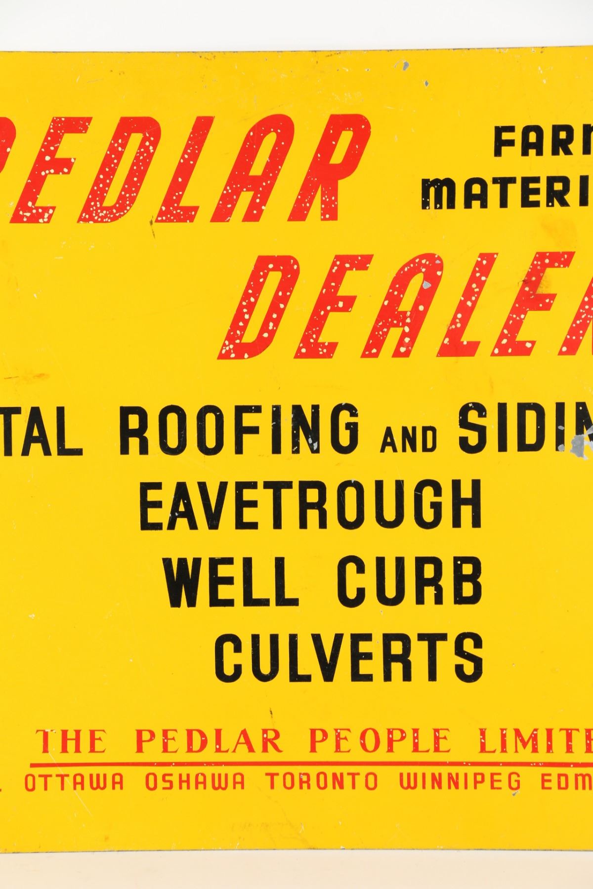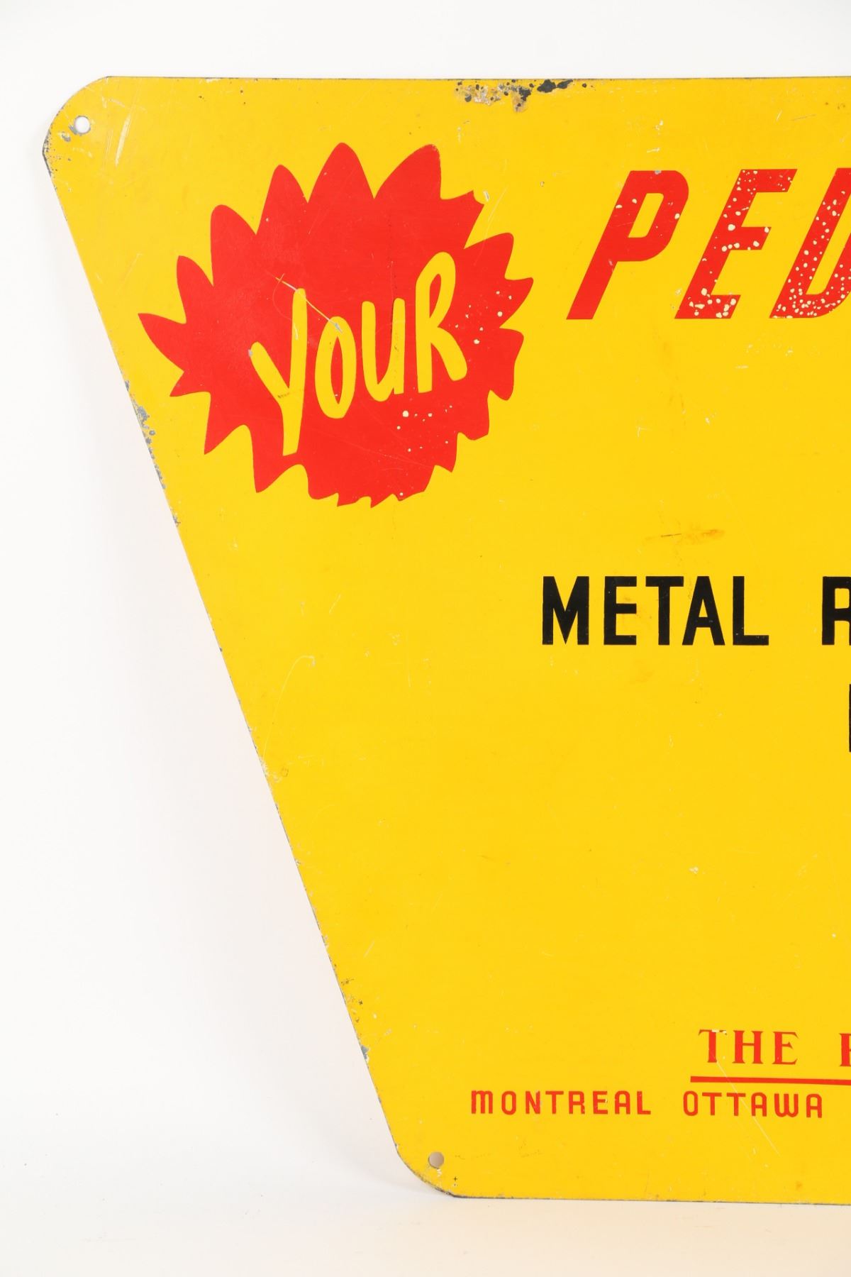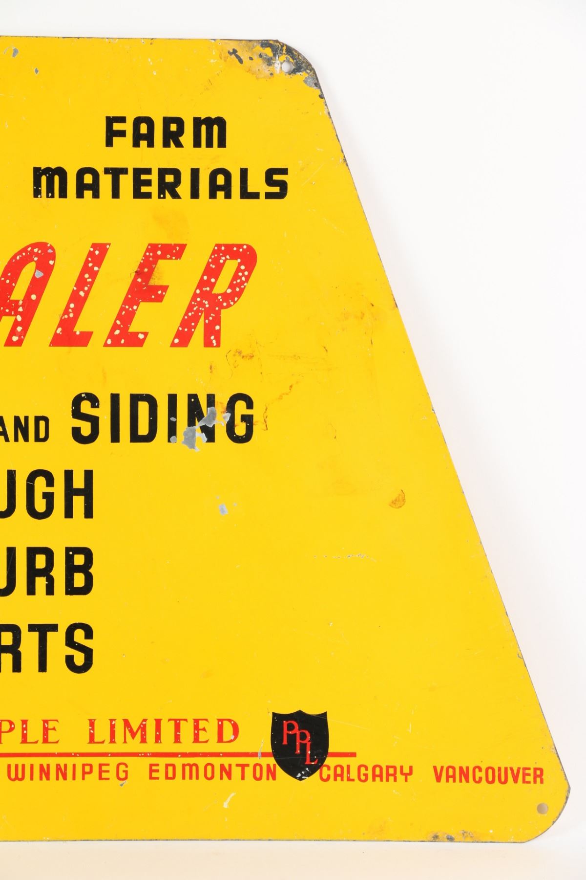 Canadian. Dealer sign. Single-sided, screened steel. 18" x 29.5". Edge flaking, minor scattered flaking, staining. $100-200.