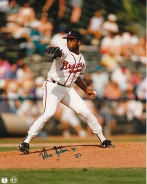 Pedro Borbon, Jr. hand autographed Atlanta Braves 8x10 Color Photo. Certificate of Authenticity from Athlon Sports.