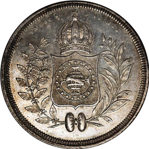 <B>Pedro II 1200 Reis 1834,</B></I> KM454, well struck XF. One of the scarce issues in this popular series with a small mintage of only 891 pieces.