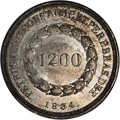 Pedro II 1200 Reis 1834, KM454, well struck XF. One of Pedro II 1200 Reis 1834,