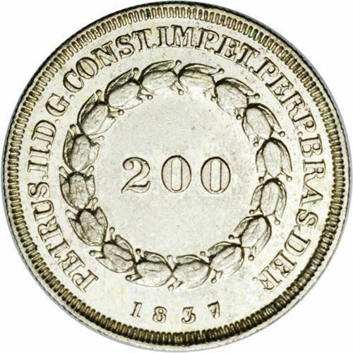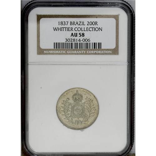 Pedro II 200 Reis 1837, KM455, AU58 NGC, lightly toned Pedro II 200 Reis 1837,