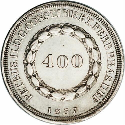 Pedro II 400 Reis 1837, KM453, MS61 NGC, lightly toned, Pedro II 400 Reis 1837,