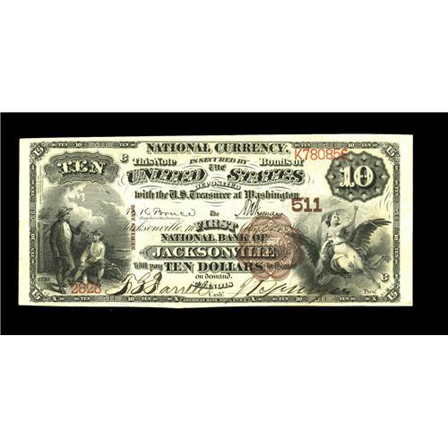 <B>Jacksonville, IL</B></I> - $10 1882 Brown Back Fr. 480 <B>The First NB</B></I> Ch. # 511<BR>The original paper quality remains on this vivid Brown Bank. A horizontal fold accounts for the grade and does not detract from the eye appeal. <B>Choice About Uncirculated</B></I>.