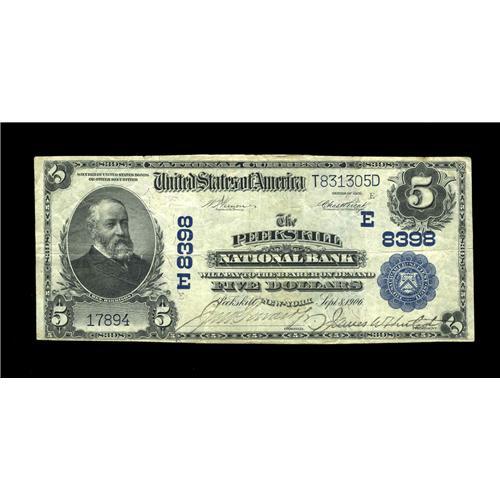 <B>Peekskill, NY</B></I> - $5 1902 Plain Back Fr. 600 <B>The Peekskill NB</B></I> Ch. # (E)8398<BR>This is one of just about a dozen large examples listed in the census from this institution, which never was able to achieve the success of its better established competitor, the West Chester County NB. Nice <B>Fine-Very Fine.</B></I>
