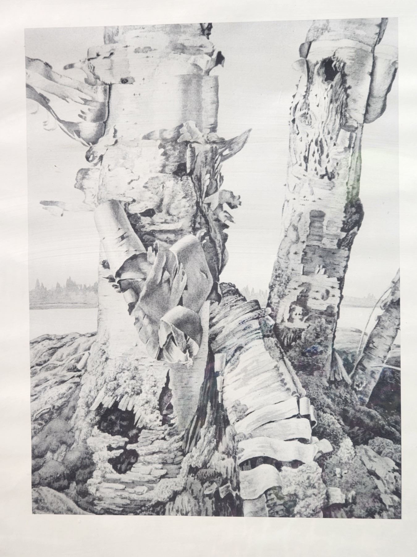 "Peeling Birches" framed print, by Ernest Lindner - 18"x21.5"H