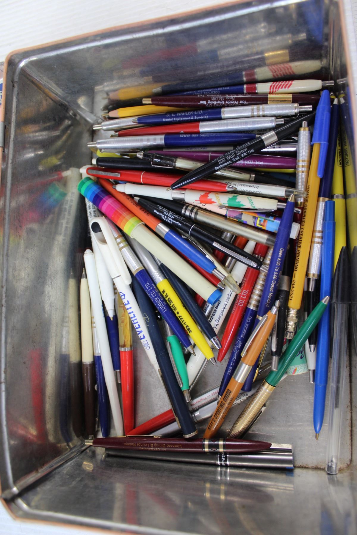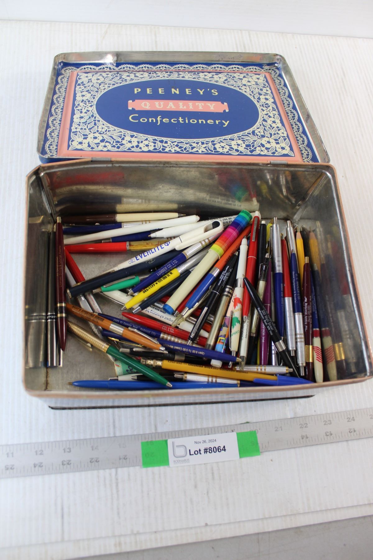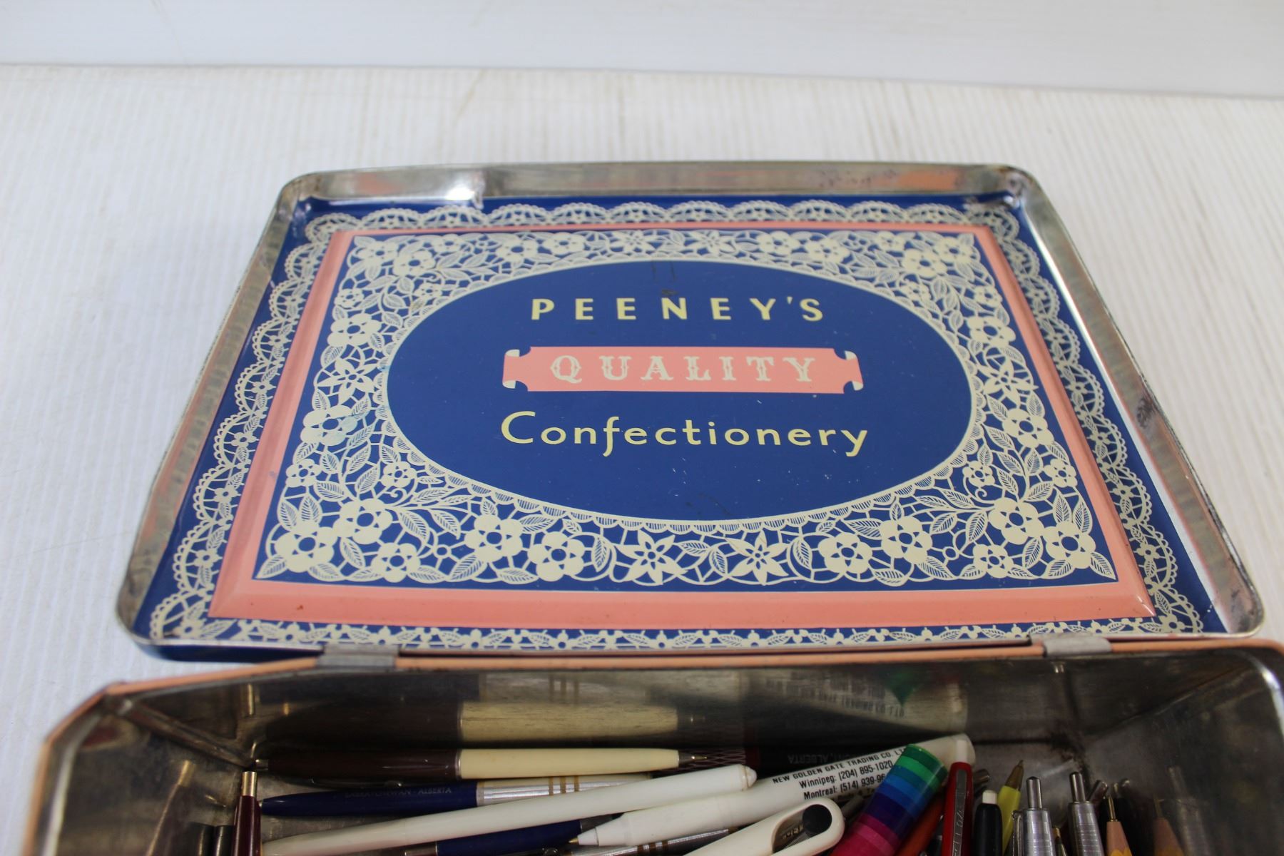 Peeney's tin With Assorted Pens