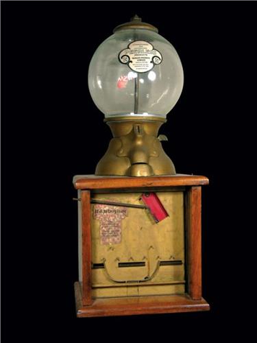 Peerless Products Gumball/Trade Stimulator, Blue Bird Products Mfg. One cent, Get your penny back if it goes down the track. Good original condition. 9 1/2 X 22 X 9 inches.