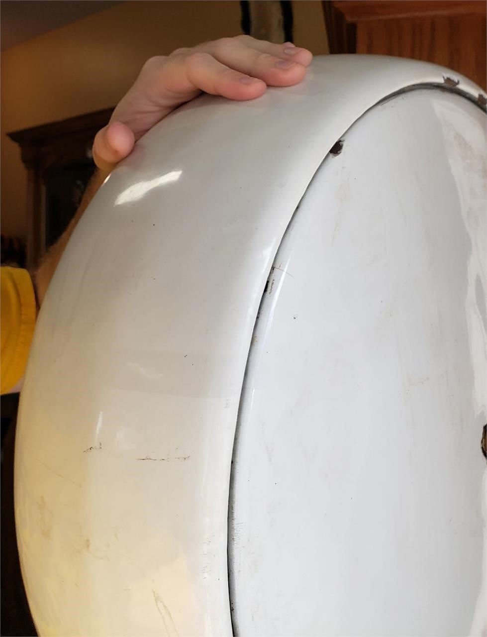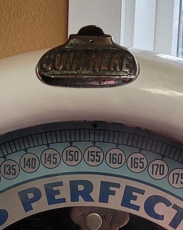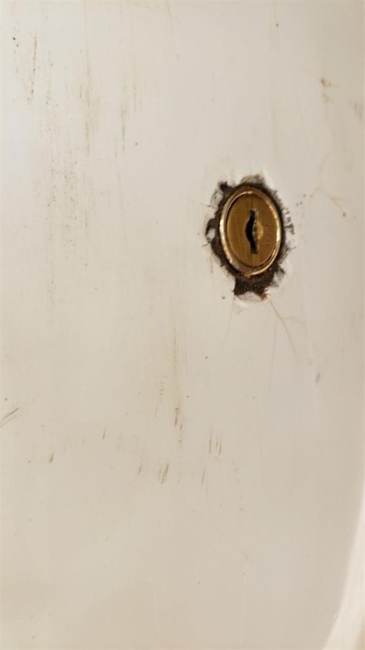 White Porcelain. No key. Appears to be working. Nickel machine. Buyer to arrange for shipping, we do not offer in house shipping on this item.