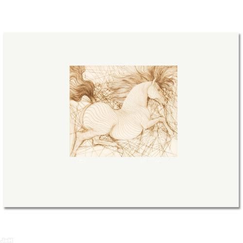 Well-known for his intricate linework and complex designs, Guillaume Azoulay creates works of art that are both emotive and enchanting. "Pegase" is a limited edition etching on paper by Azoulay, numbered and hand signed by the artist. Includes Certificate of Authenticity! Measures approx. 30" x 22" (with border), 14" x 12" (image).