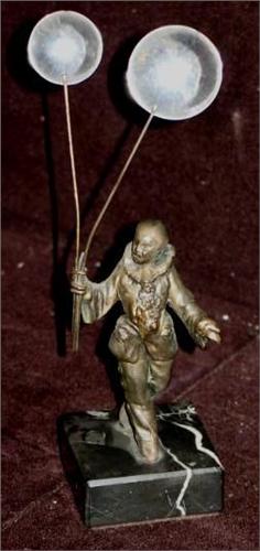 Peirot Bronze Clown on marble base, 7" tall.