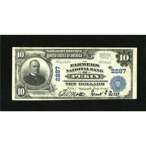 <B>Pekin, IL</B></I> - $10 1902 Plain Back Fr. 632 <B>The Farmers NB</B></I> Ch. # 2287<BR>A minor edge split is noted on this otherwise perfectly original note. <B>Very Fine.</B></I><BR><I>From The Lincoln Collection</B></I><BR><BR><b>Shipping:</b> Coins & Currency (<a target="_blank" href="http://www.heritageauctions.com/common/shipping.php">view shipping information</a>)