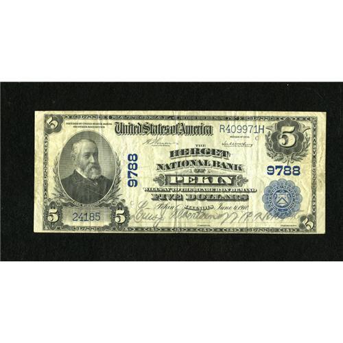 <B>Pekin, IL</B></I> - $5 1902 Plain Back Fr. 601 <B>The Herget NB</B></I> Ch. # 9788<BR>An ideally original piece with bright, solid paper and strong remaining stamped signatures. <B>Very Fine.</B></I><BR><I>From The Lincoln Collection</B></I><BR><BR><b>Shipping:</b> Coins & Currency (<a target="_blank" href="http://www.heritageauctions.com/common/shipping.php">view shipping information</a>)