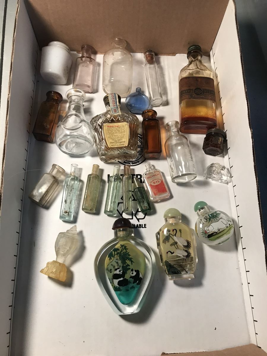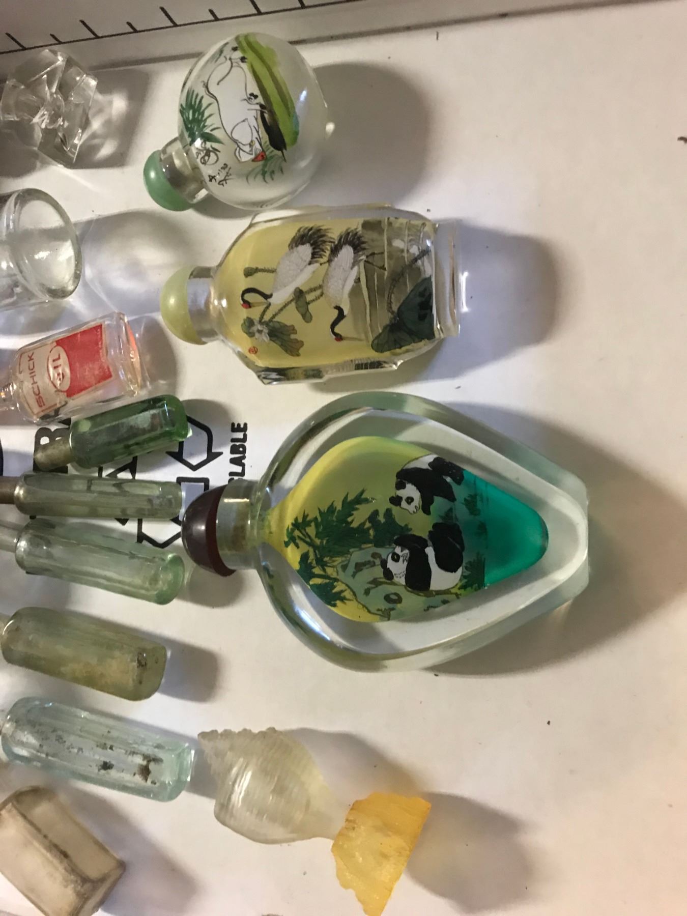 Peking Glass Inside Zodiac Sign Painting and Pig Reverse Hans Painting. Vintage medicine bottles and more. Pickup at 9am