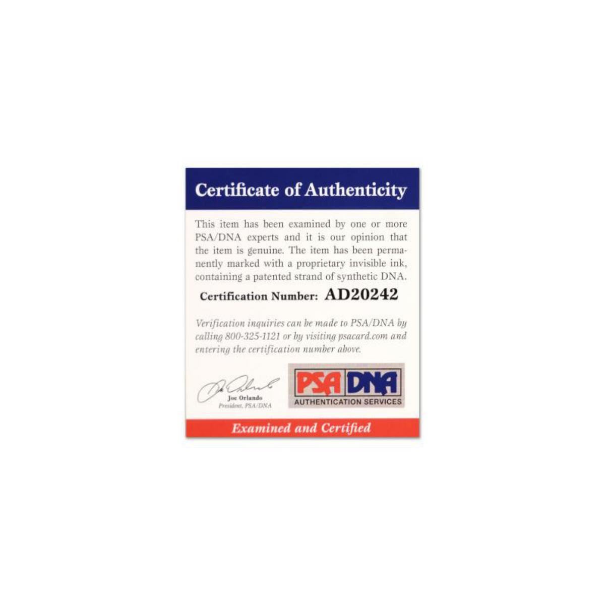 "Pele & Ali Hug" is a print on paper that is autographed by legendary Brazilian footballer, Pele. This piece is presented with a Certificate of Authenticity from PSA/DNA, which authenticates sports memorabilia using proprietary permanent invisible ink as well as a strand of synthetic DNA. We make no additional warranties. Measures approx. 16" x 20" (image). Reference #: 224254.
