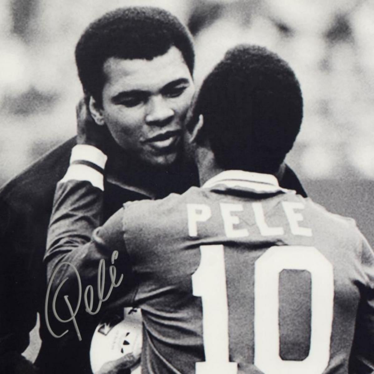 "Pele & Ali Hug" Print, Autographed by Legendary Brazilian Footballer, Pele.