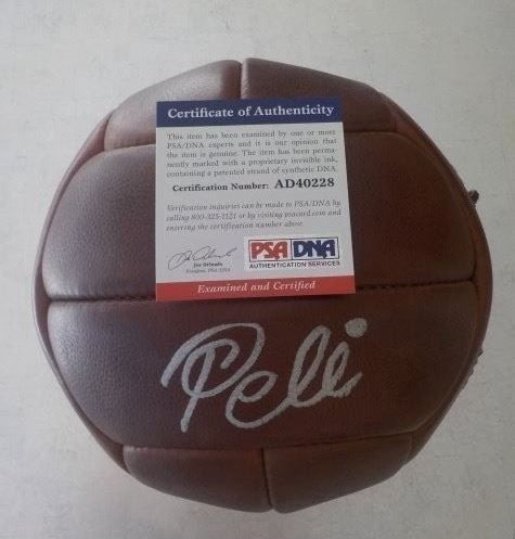 A replica ball from the 1958 World Cup Final Signed by Arguably the greatest player of all time Pele , the ball is PSA Authenticated with certificate.This item comes with a Certificate of Authenticity from a third party authenticator. This Certification of Authenticity does not imply that the item will be certified by any other rival authentication companies. The accompanied certification is the only certification the auction company can confirm. These items are being sold as collectable pieces and there is no guarantee that this item can be resold on any online marketplace. Each of these companies has their own policies and politics.