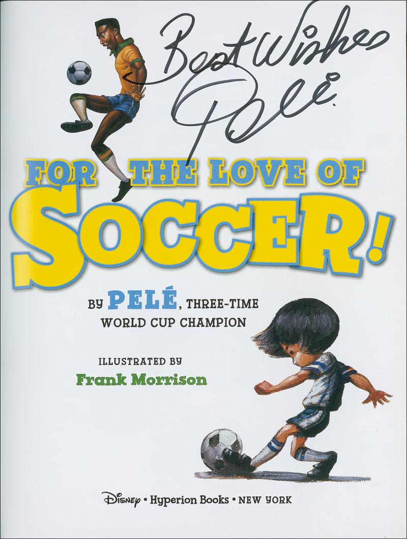 Signed book: For the Love of Soccer. First edition, first printing. NY: Hyperion Books, 2010. Hardcover with slipcase, 8.75 x 11.5. Signed in black felt tip on the title page, “Best Wishes, Pele.” In fine condition.