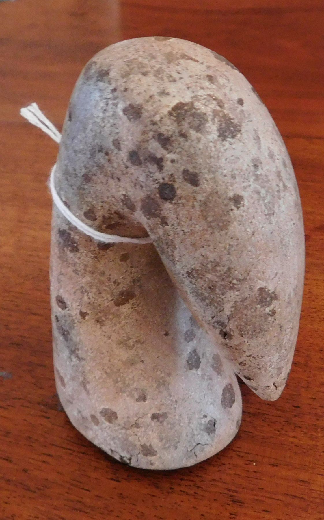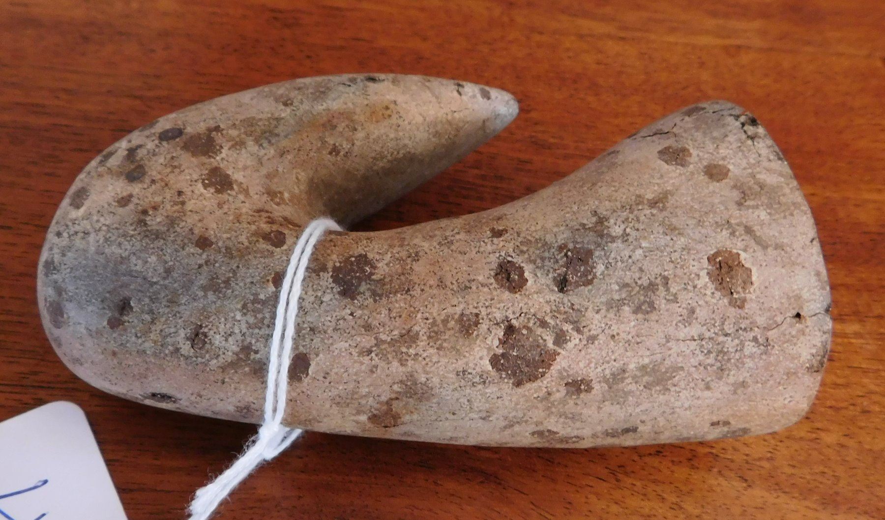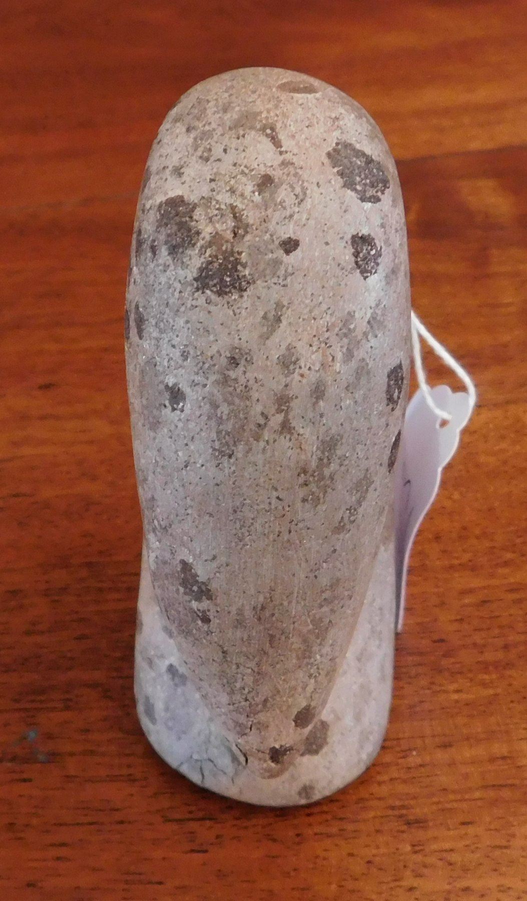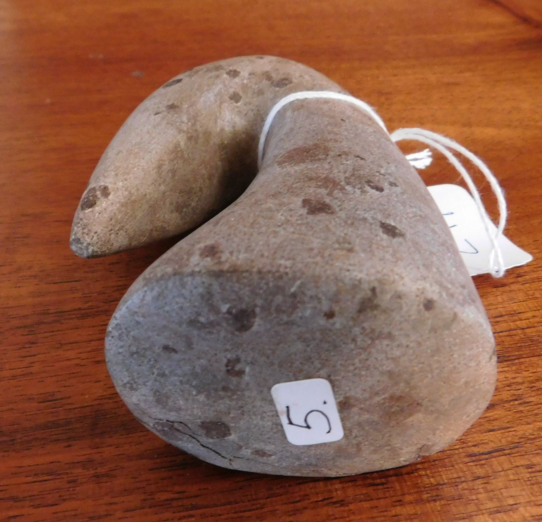 Pelican Stone, pre-historic item. Made of steatite, the item measures 4 1/4" x 2 1/2 x 1 1/2". Orange County, California, Chumash. Condition: Good, see images. Shipping: $15.50 w/insurance and signature.
