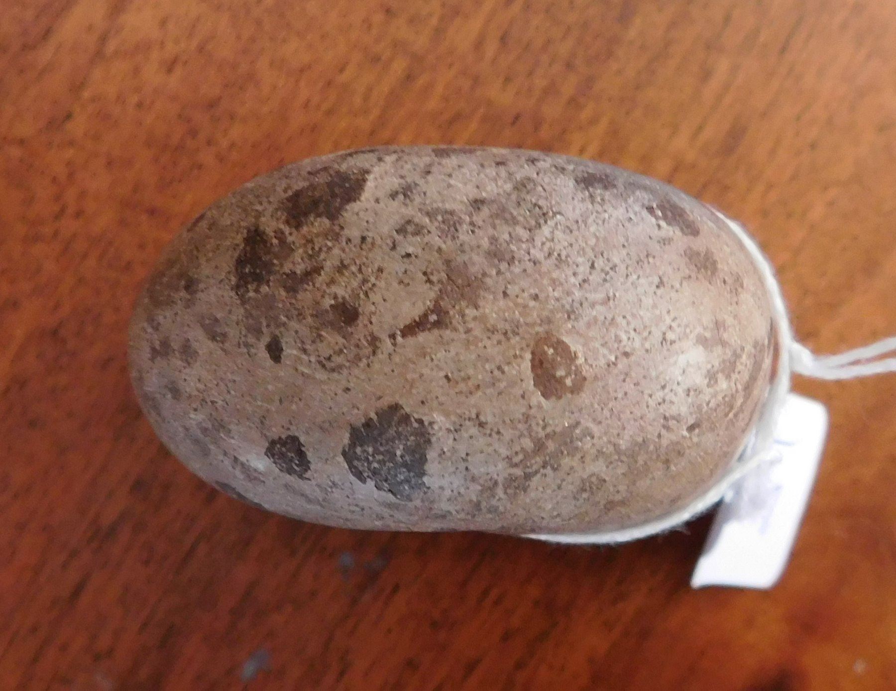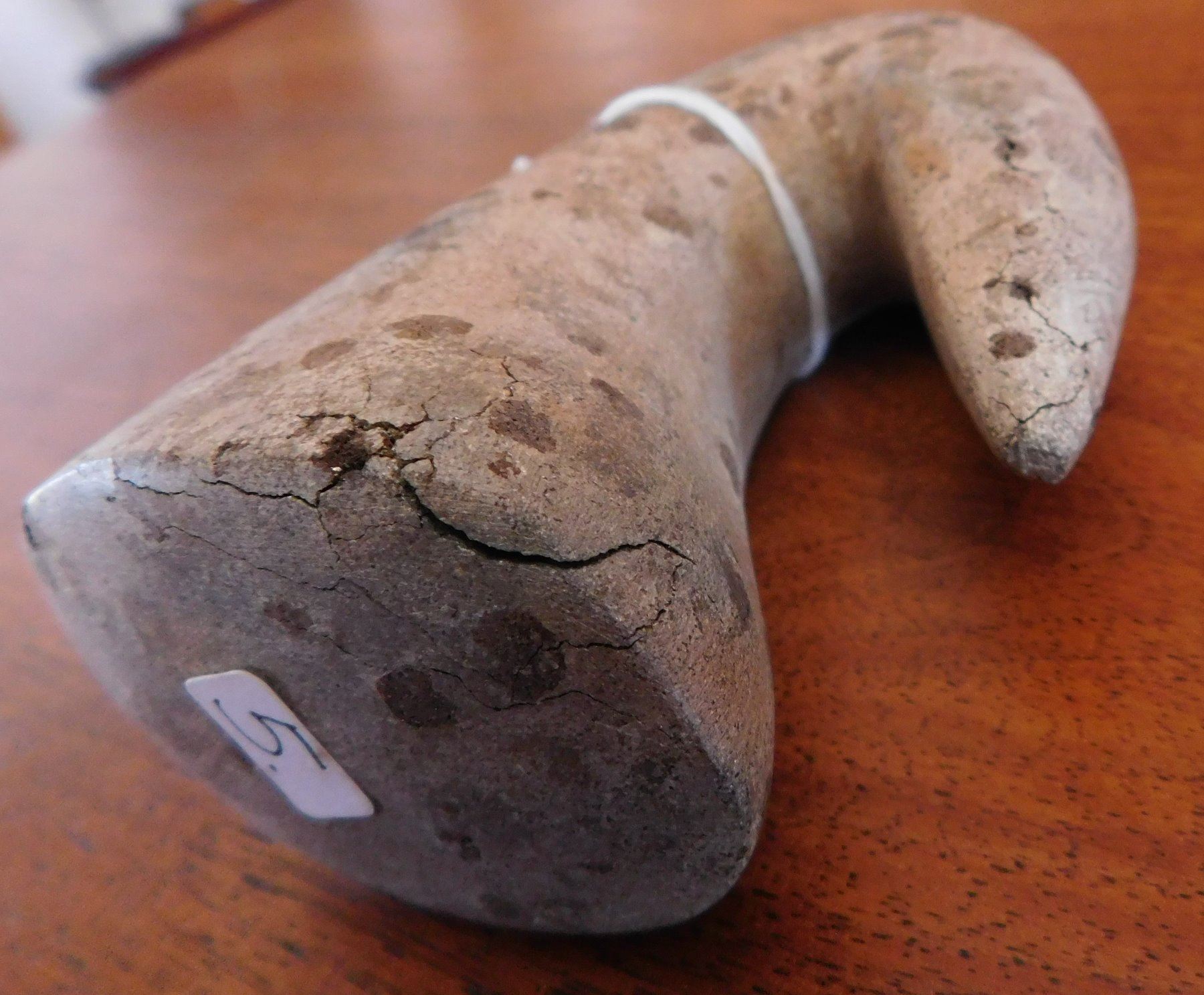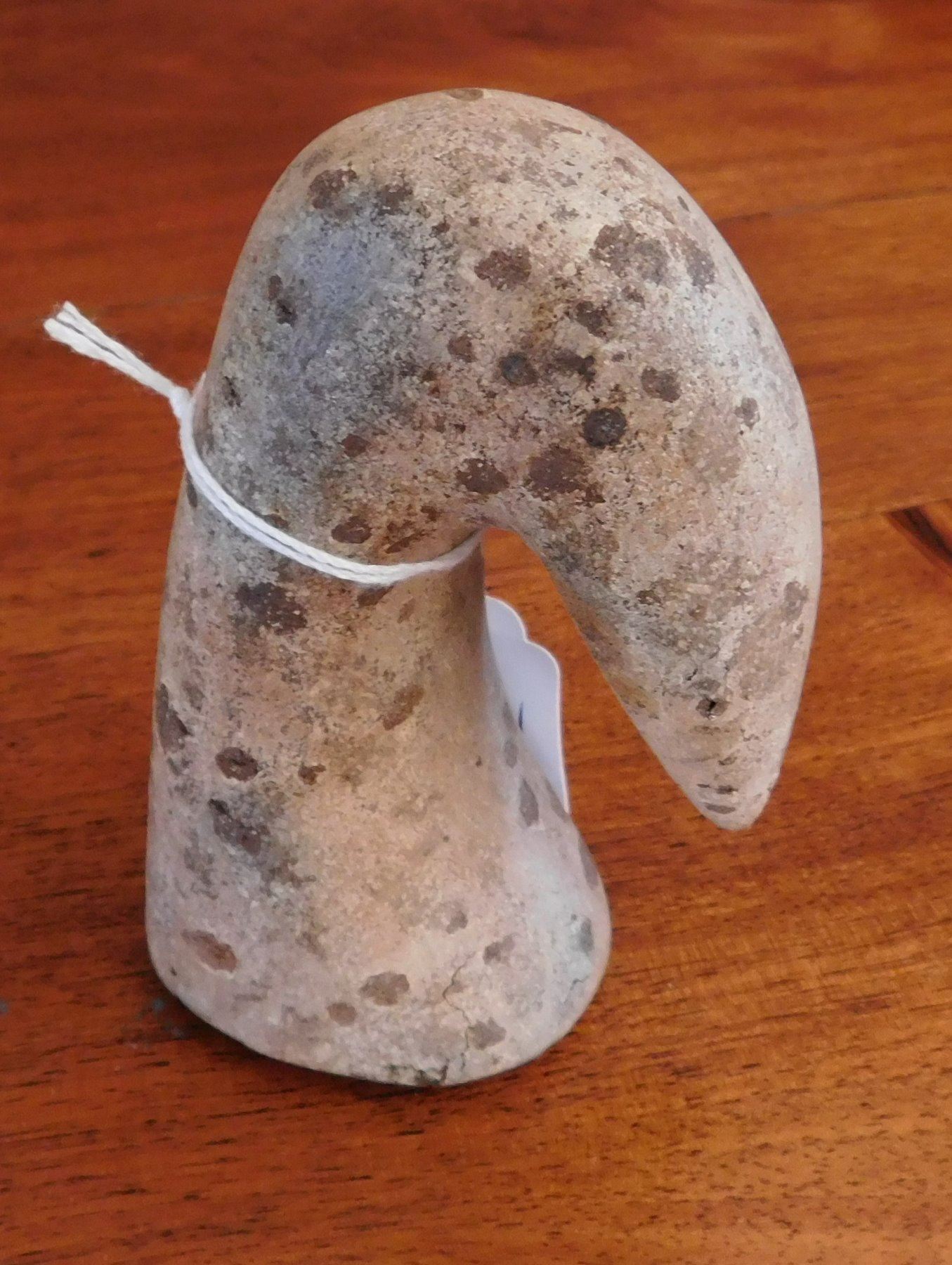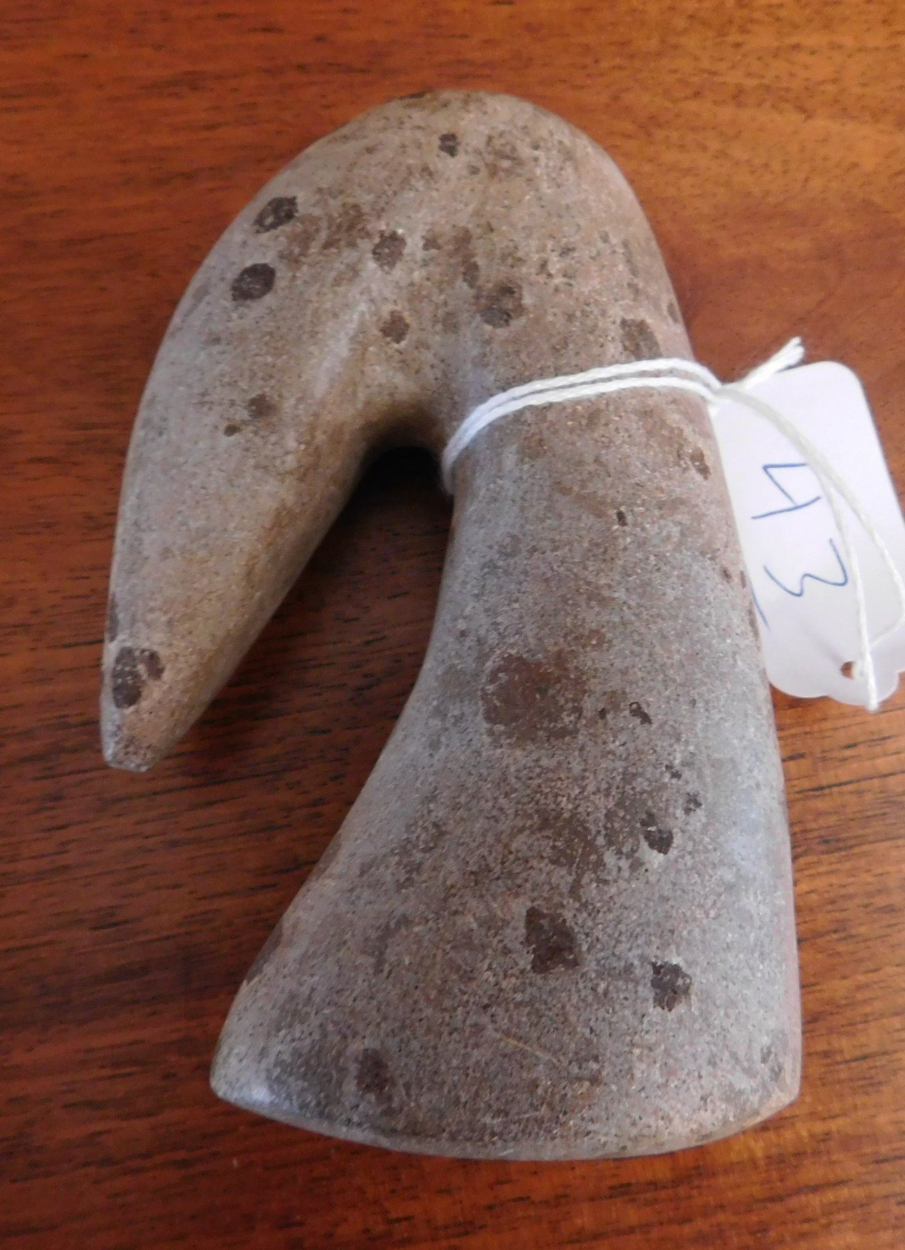 Pelican Stone, pre-historic item. Made of steatite, the item measures 4 1/4" x 2 1/2 x 1 1/2". Orange County, California, Chumash. Condition: Good, see images. Shipping: $15.50 w/insurance and signature.
