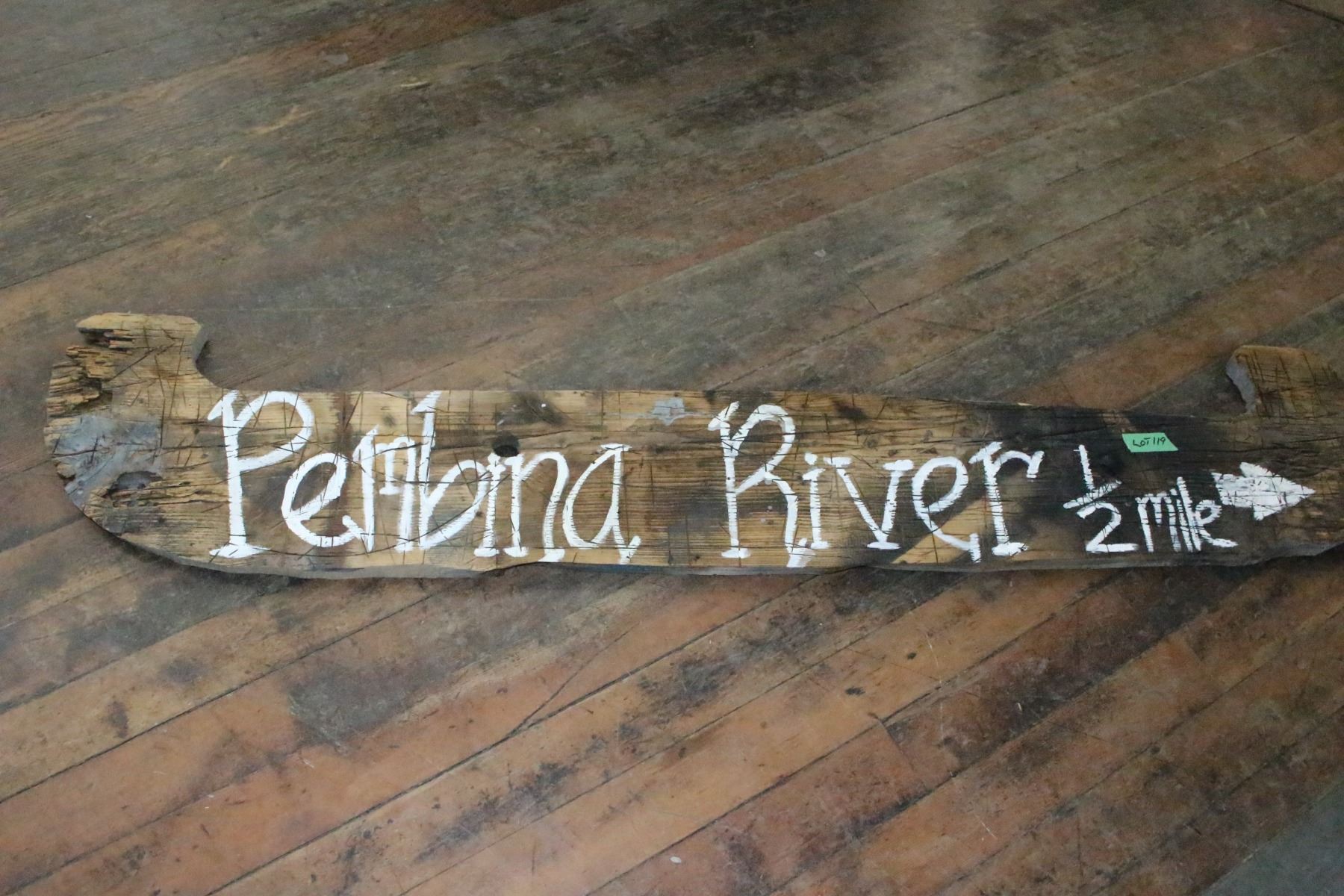 "Pembina River 1/2 Mile ?" Sign Board (Canoe Shape)