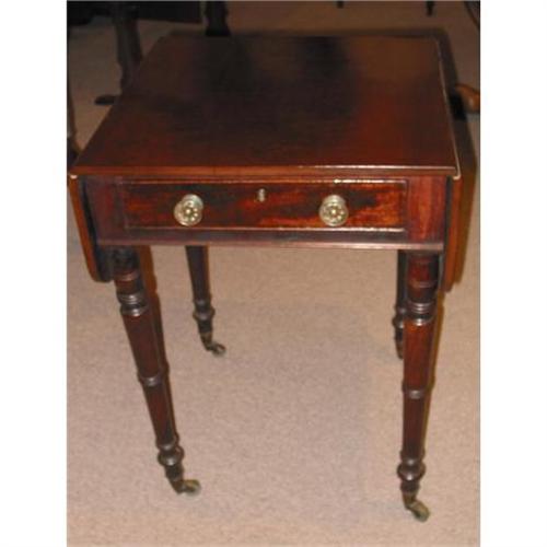 Superb English Wm.IV Mahogany drop-leaf Pembroke Table. Original castors and brass knobs. Rich brown patina. 2lins x 2lins (closed) 2lins x 37ins (fully extended). c.1830 Height 37ins.