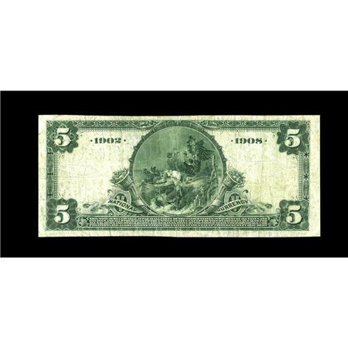 <B>Pen Argyl, PA</B></I> - $5 1902 Date Back Fr. 593 <B>The First NB</B></I> Ch. # (E)4352<BR>A bright and nicely margined <B>Very Fine</B></I> from the first of two issuers to gain a federal charter from here. If you want a $5 Date Back from here, plan on some spirited competition, as this is the only one yet to surface from this Northampton County issuer.<BR><BR><b>Shipping:</b> Coin/Currency (<a target="_blank" href="http://www.heritageauctions.com/common/shipping.php">view shipping information</a>)