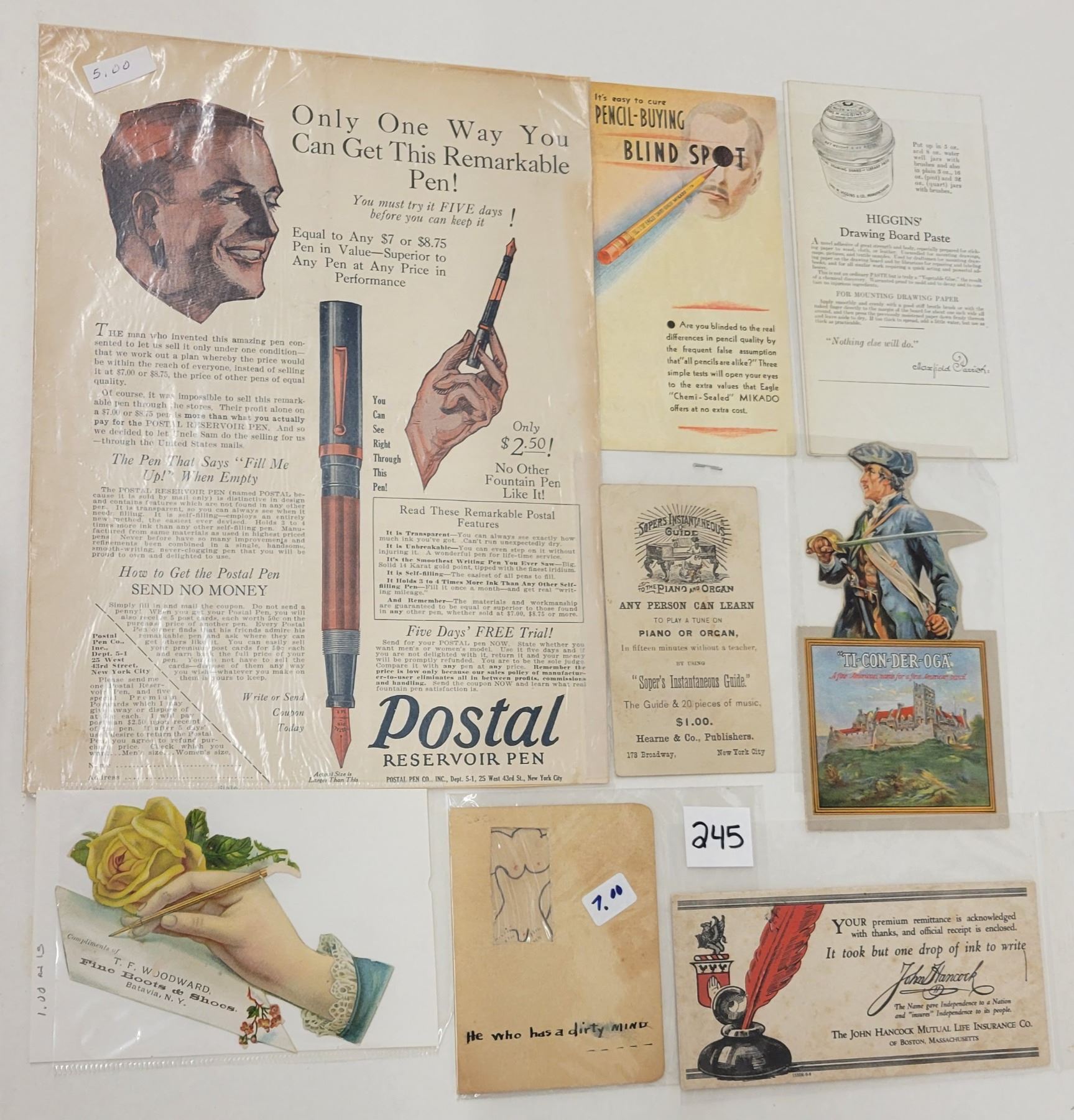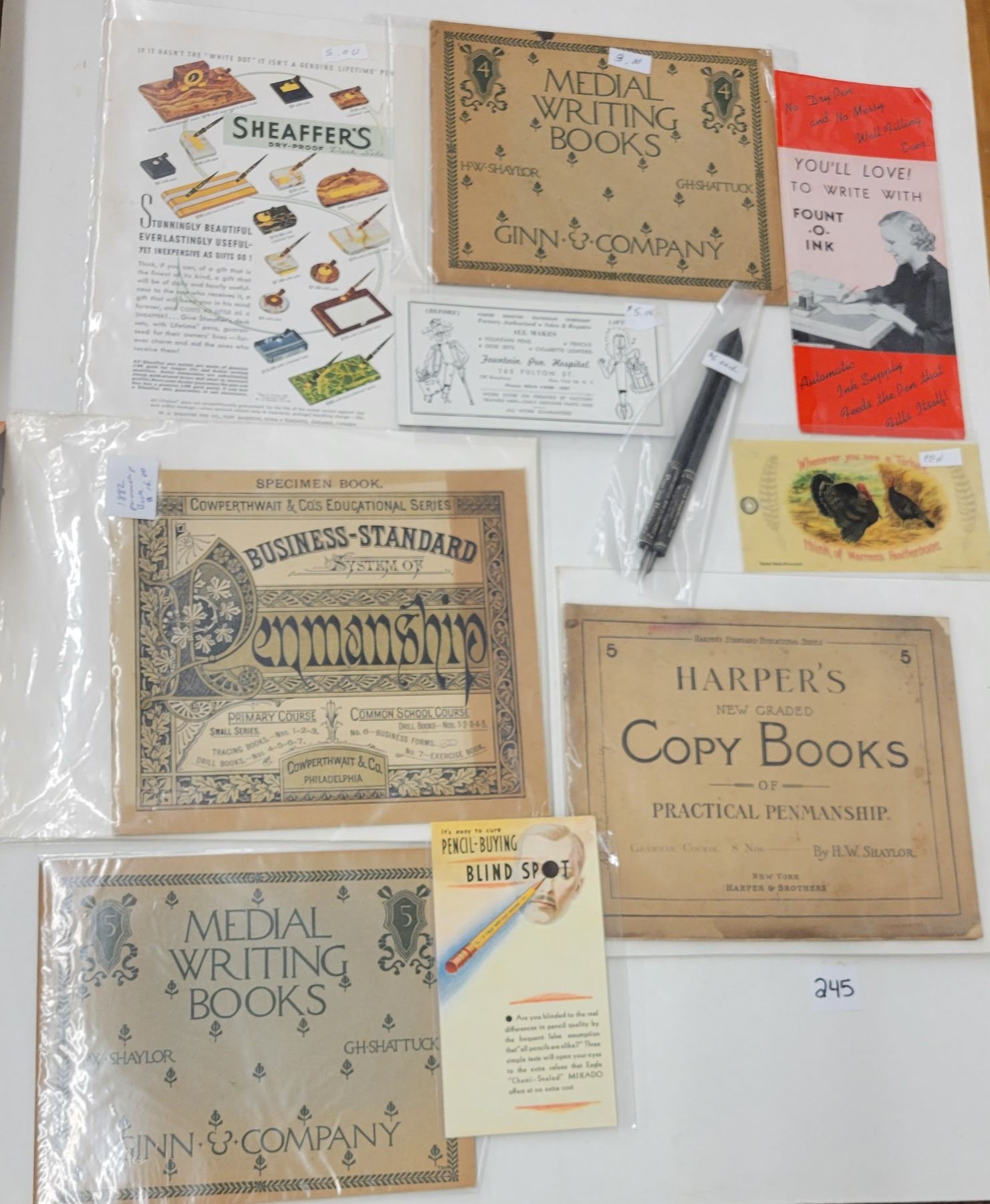 Approx. 18 pieces of pen & ink related ephemera.