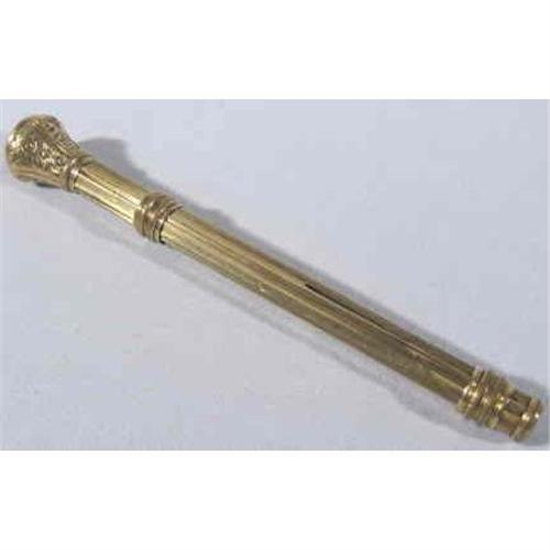A beautiful English Victorian Combination Pen and pencil. The Pencil is retractable and is moved in and out by the top ring that slides down the body of the item. When needed as a pen a pen nib may be inserted into a special slot at the end that is next to where the pencil appears.There is a large Citrine coloured stone at the end of the item, which is decorated with flowers.