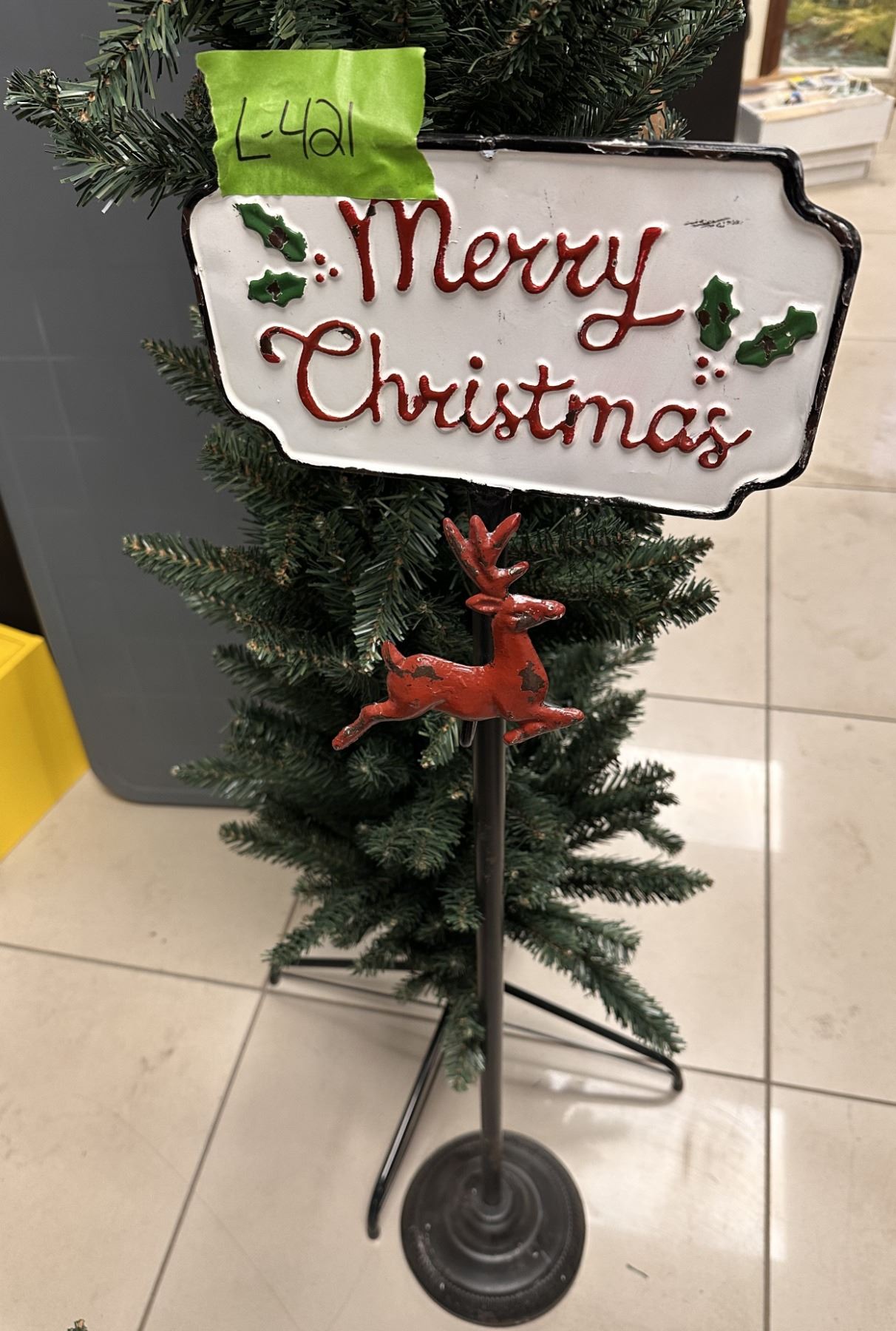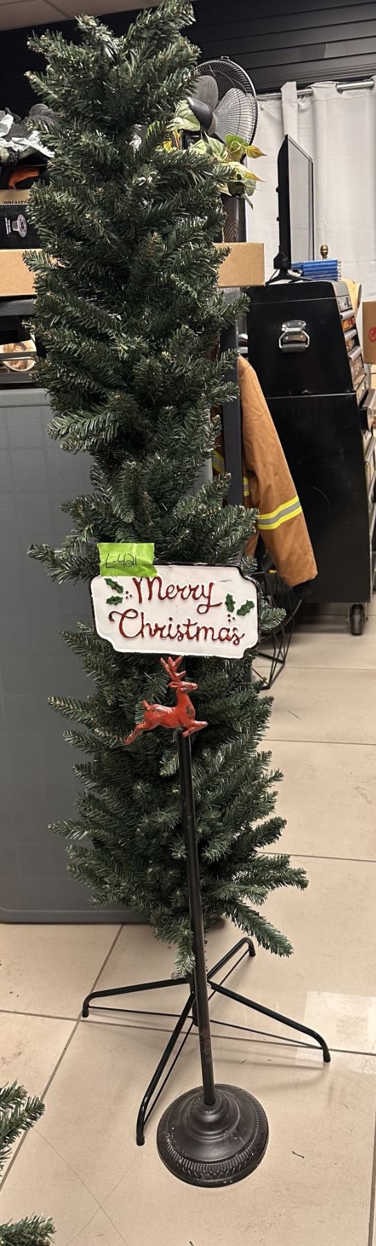 Pencil Christmas tree, non lit & metal stocking stand