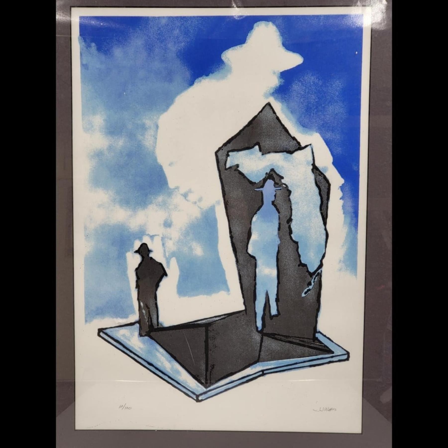Pencil Signed & Numbered J. J. Watts Lithograph 12/100, Blue Cowboy