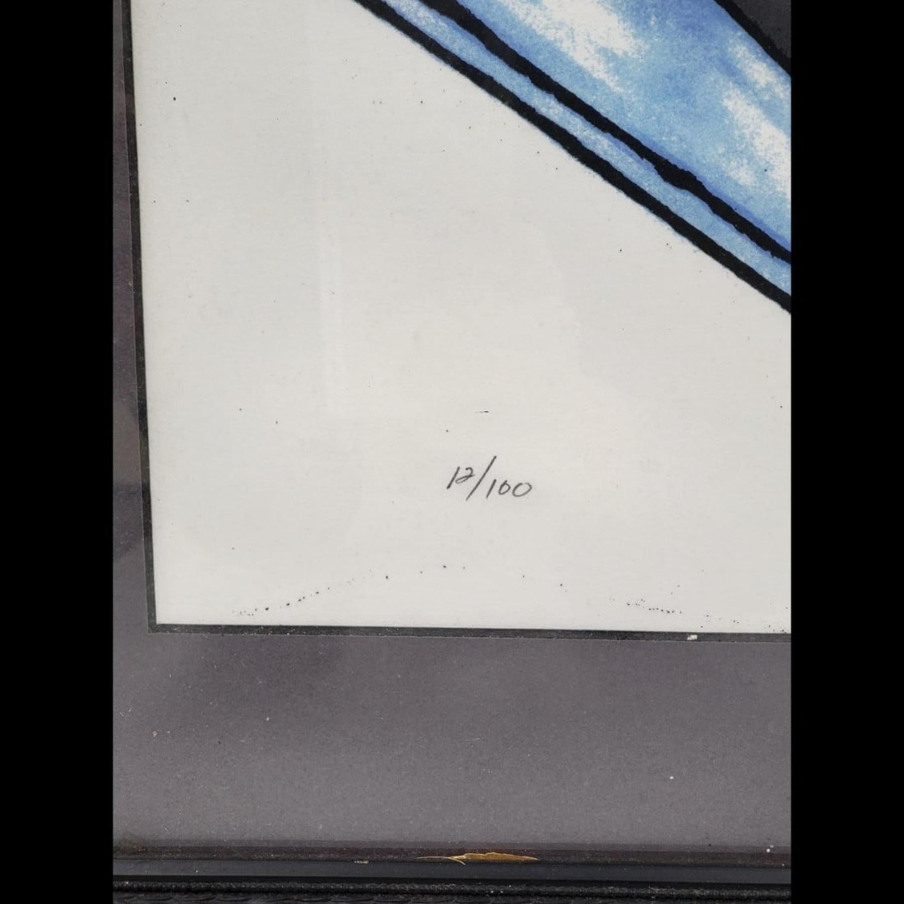 Pencil Signed & Numbered J. J. Watts Lithograph 12/100, Blue Cowboy. Measures approximately 20" x 26-1/2" framed.