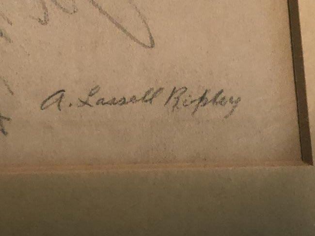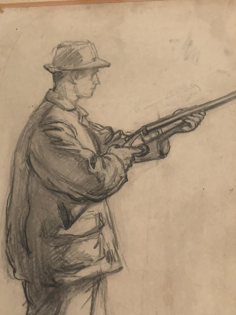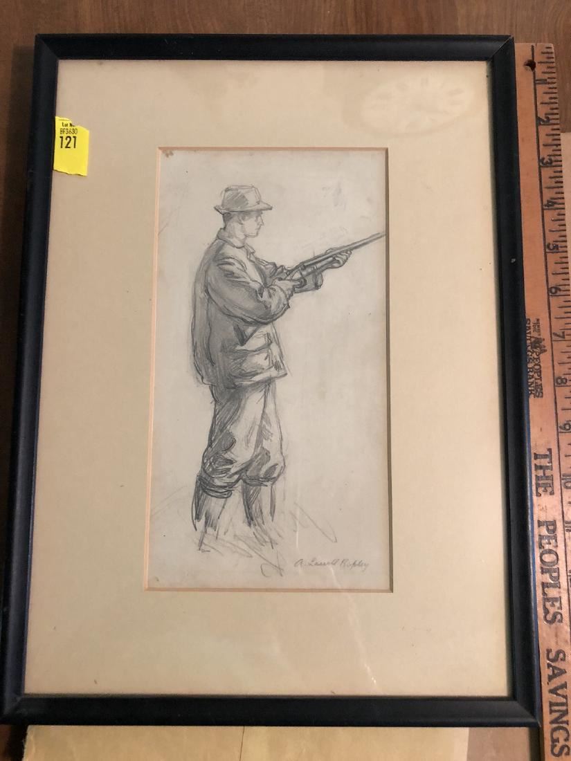 Framed and matted pencil sketch of hunter, signed by A. Lassell Ripley. (RL)