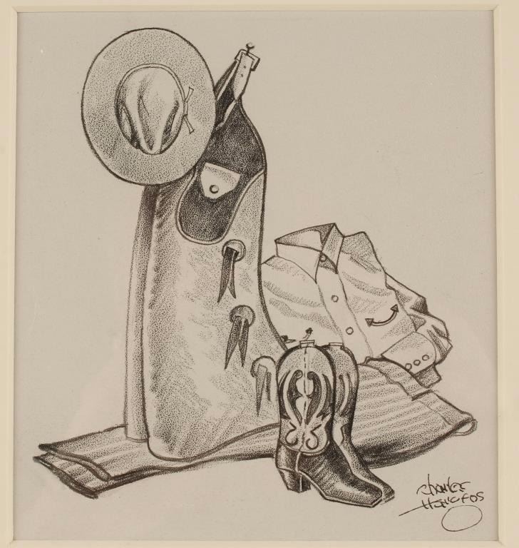 "1893-1907" Entitled 'Tailpiece Western Clothin". 5 3/4"x5", hand signed lower right corner.