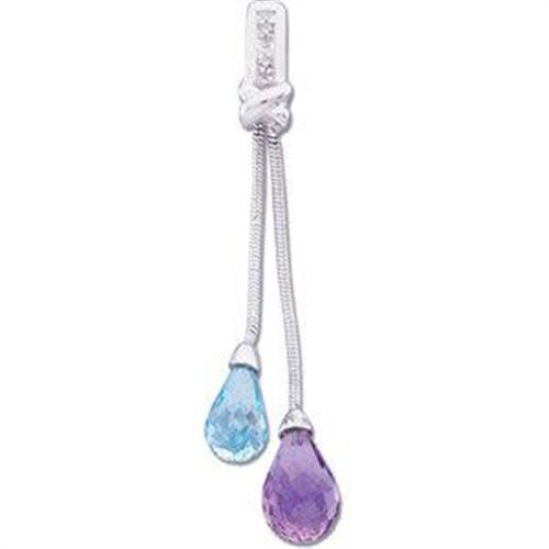 This 'Spring like' pair of Pendant is 14k White gold and features Swiss BLUE TOPAZ and AMETHYST dangling from a cluster of DIAMONDS.