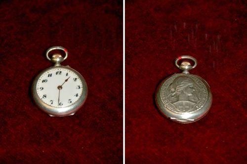 Très jolie montre pendentif dame commémorative «SOCIETE D'UTILITE PUBLIQUE DE FEMMES SUISSES», H.FREY 1908, échappement à cylindre, en très bon état, avec coffret