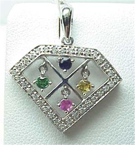 Pendant multi colored sapphires .27Ctw with diamonds .18Ctw 14kt white gold