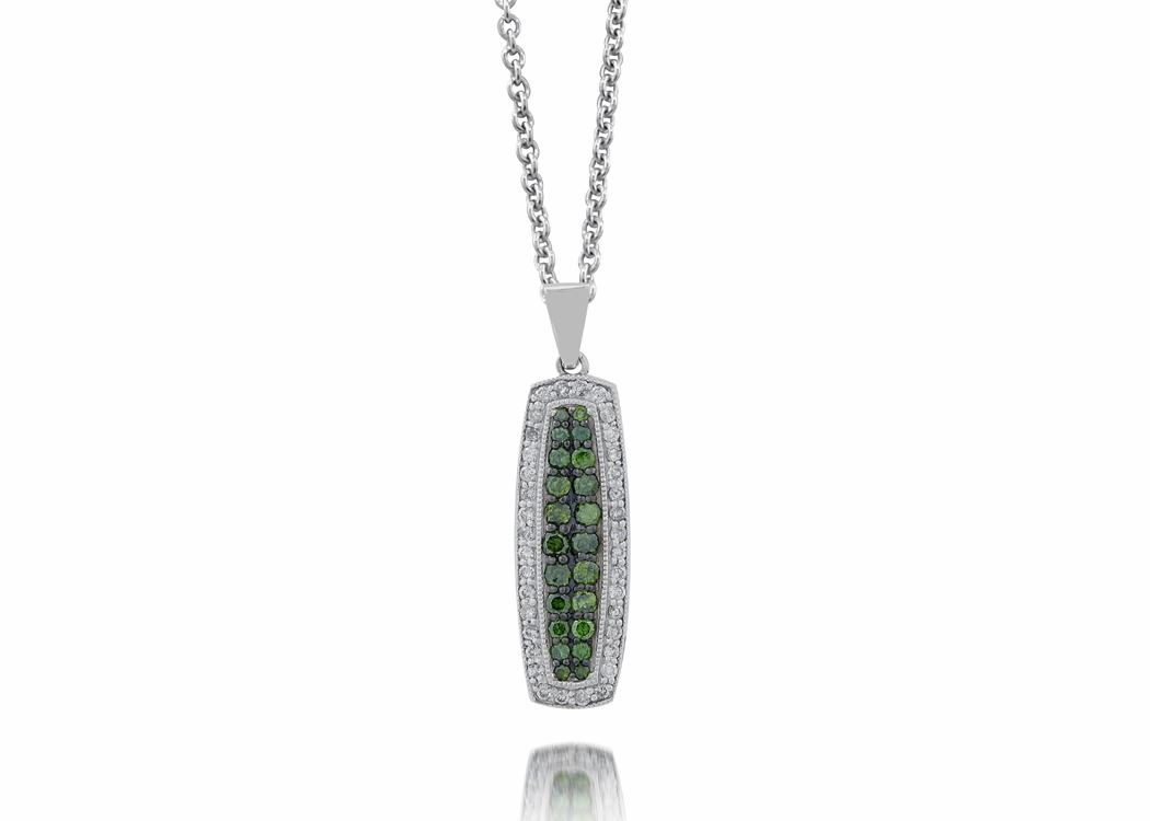 36 rds. 0.30 Ct. with Chain; 22 rds. 0.49 Ct. Green Tre. 3.5% P/S